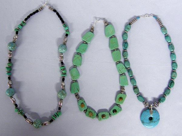 Three Turquoise Necklaces. Longest measures approx. 26'' end to end. Buyers Pay Actual Shipping and Handling Charges(see terms and conditions for more information).