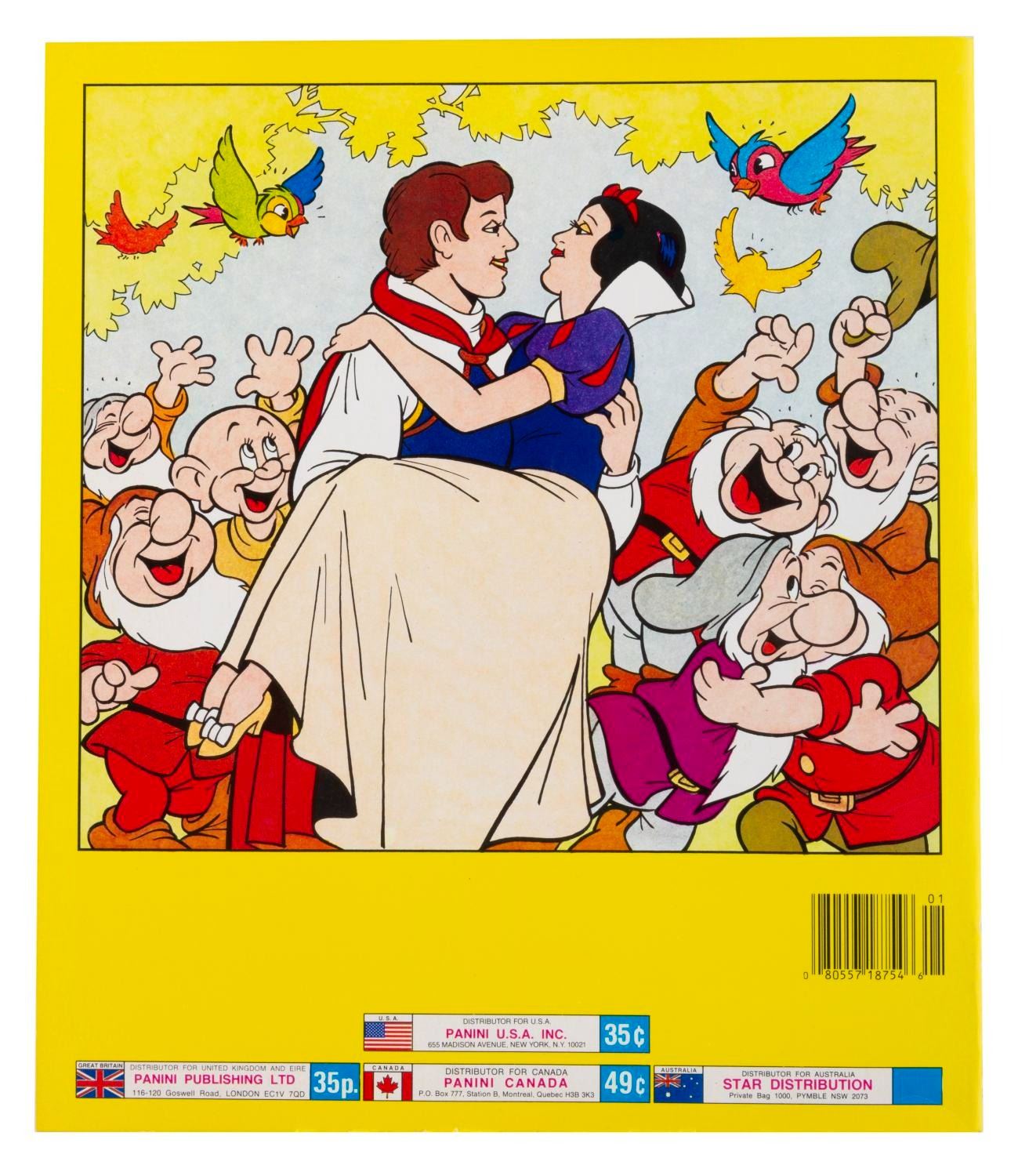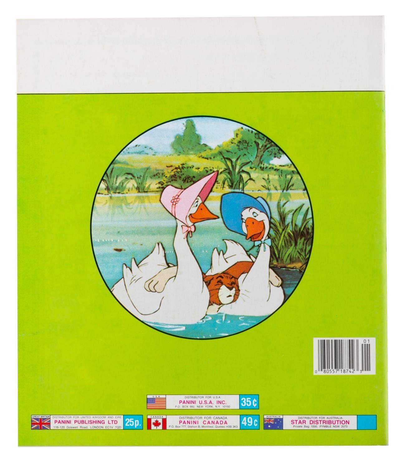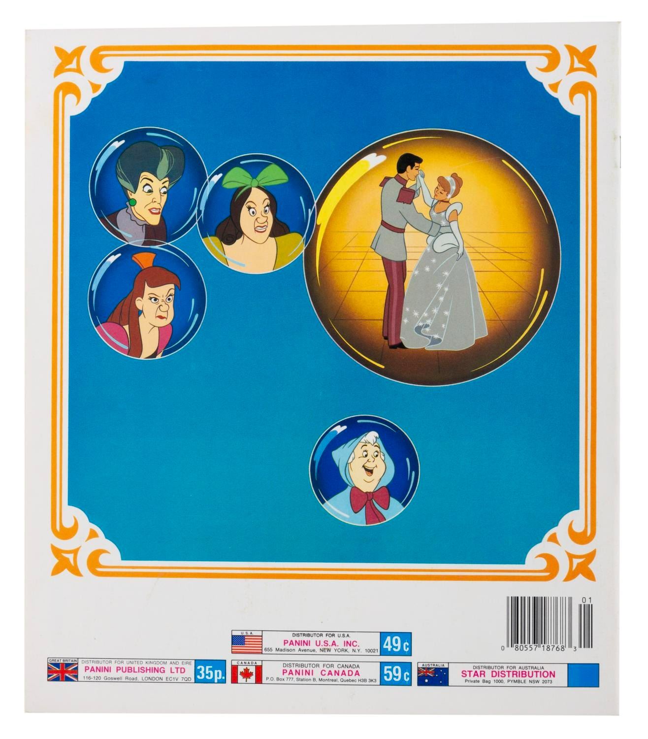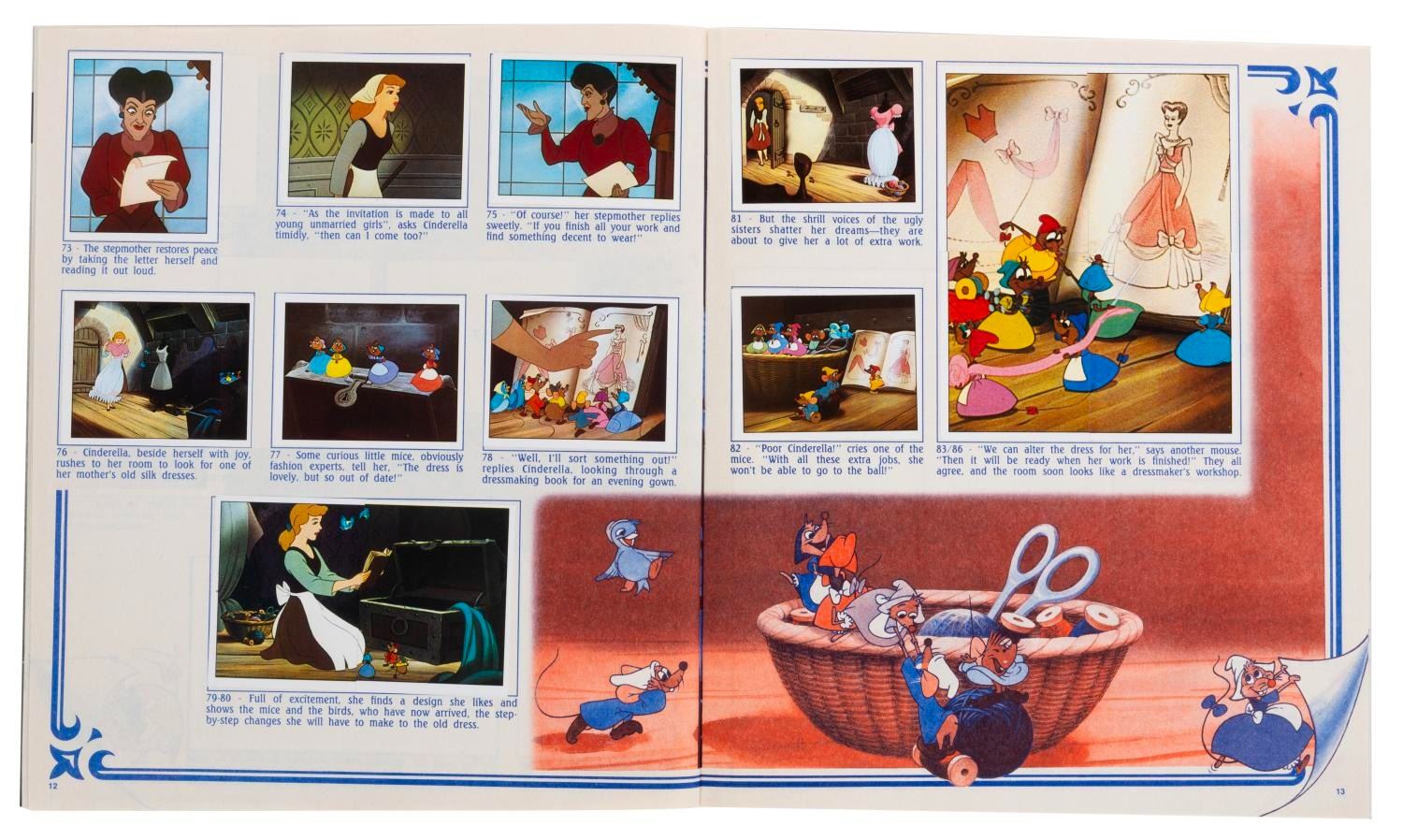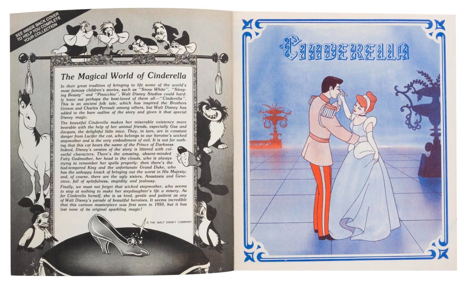 (Panini, 1970s-80s) Three Panini collectible sticker albums, including "Snow White and the 7 Dwarfs," "Cinderella," and "The Aristocats." The "Cinderella" book is filled with stickers, and the other two are unused and do not include stickers. Measuring 9" x 10.5" each, the books are in fine-as-new condition, with the "Cinderella" book in very good condition.