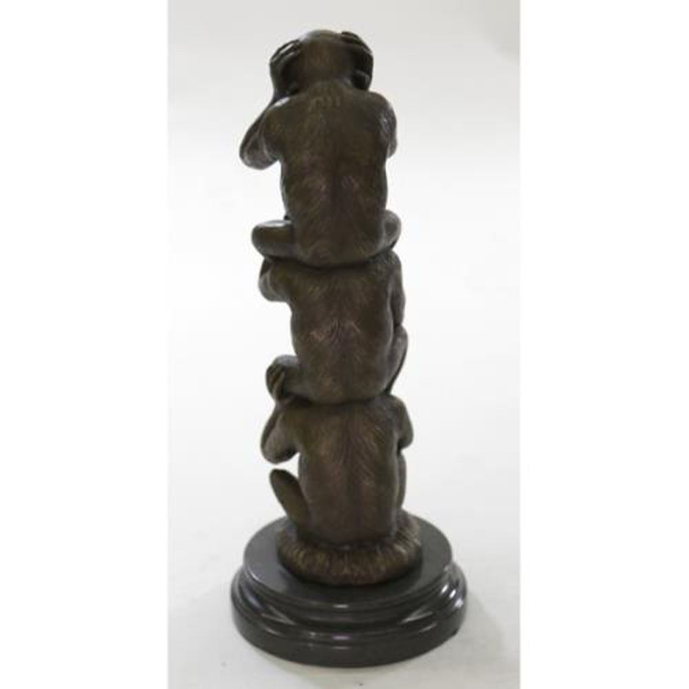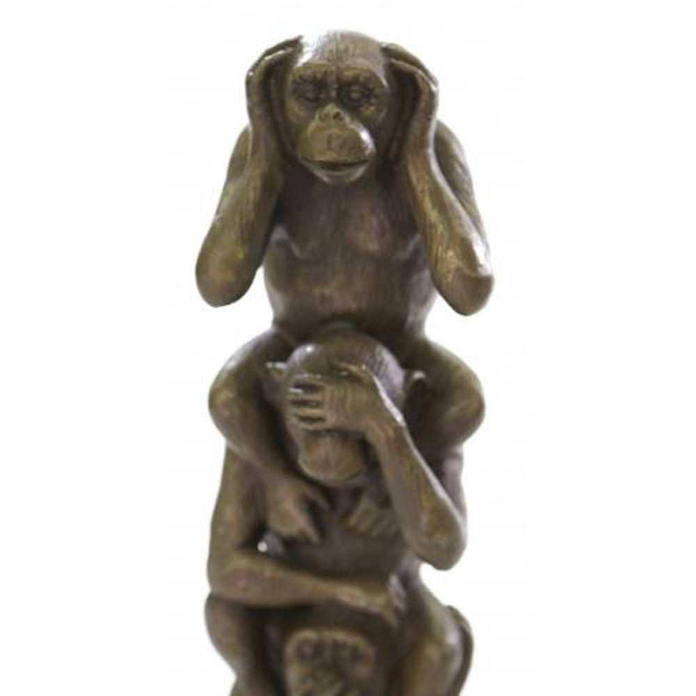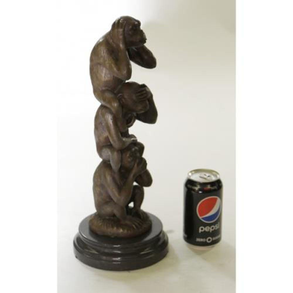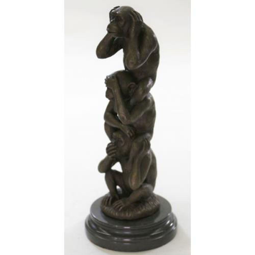 Based On The Three Wise Monkeys Sculpture Found On The Door To The Sacred Shrine Of Tosho Gu In Nikko, Japan. This Sculptures Of The See No Evil, Hear No Evil And Speak No Evil Monkeys Add A Wise Statement To The And Garden, The Impressions Left Behind The Theme Has Since Grown To Include Many Other Animal Statues Including Cherub Statues. This sculpture was cast using the Lost Wax Method and mounted on a marble base. Bronze Dimensions with Marble Base: Height 16 X Width 6 Inches. Weight: 12 LBS.