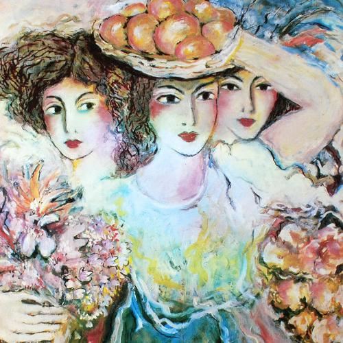 With soft, sweeping brush strokes and a delicate color palette, Zamy Steynovitz (1951-2000) created sweet, romantic artwork. "Three Women" is a limited edition offset lithograph on paper, numbered and hand signed by Steynovitz. This piece was acquired in a gallery close-out and there is no specific certificate information available. Measures approx. 22" x 29" (with border), 19.5" x 25" (image).