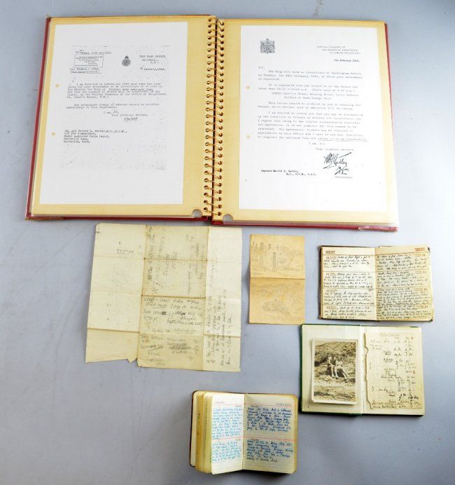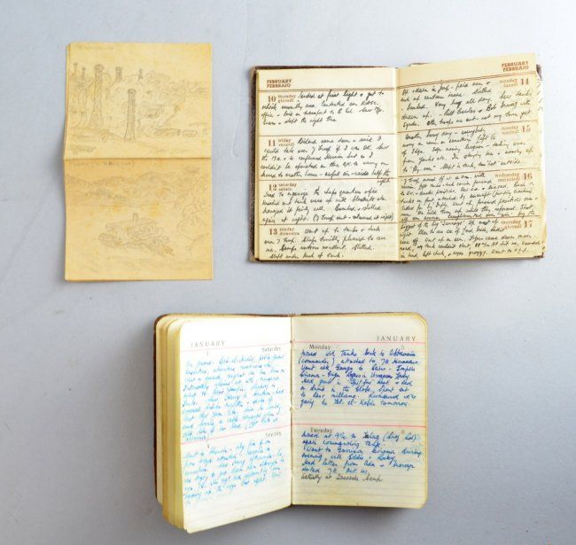 Three World War II Diary's from Captain Hal Barber who was awarded the Military Cross, of 46th Battalion Royal Tank Regiment 1942 Diary 1943 Diary 1944 Diary sold with a short Resume of his War record and copies of official letters and a copies of newspaper article titled 'Captain Barbers Exploits'