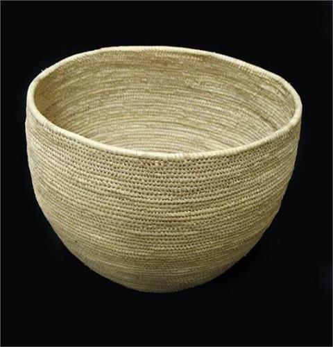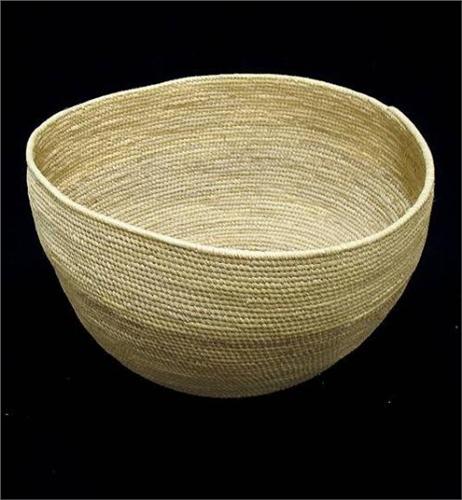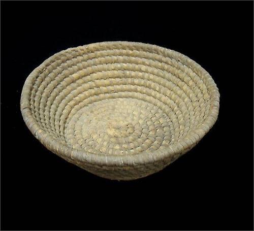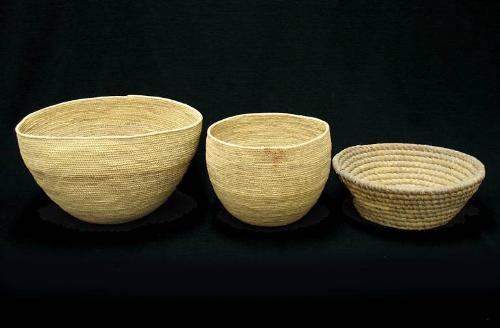Three baskets including rye straw filled coiled dough basket 4 1/2" high x 12" diameter (some loss to one exterior side); and two bowl shaped baskets 8" high x 9 1/2" diameter and 9 1/2" high x 13" diameter