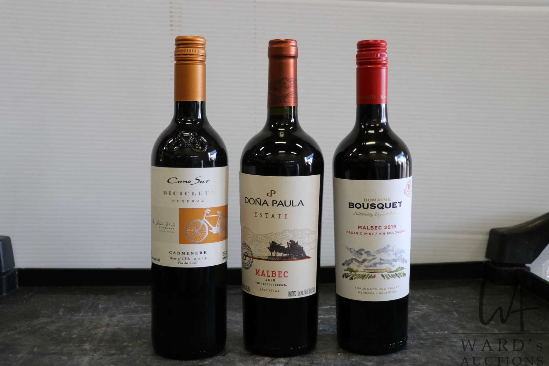 Three bottles of wine including Cono Sur Bicicleta Reserva Carmenere 2019 750ml / 13.5% ABV, Dona Paula Estate Malbec 2018 750ml / 14% ABV, and a Domaine Bousquet Malbec 2019 750ml / 14% ABV Note: Alcohol cannot be insured by any courier in Canada. Local pick up is recommended. Canadian bidders only
