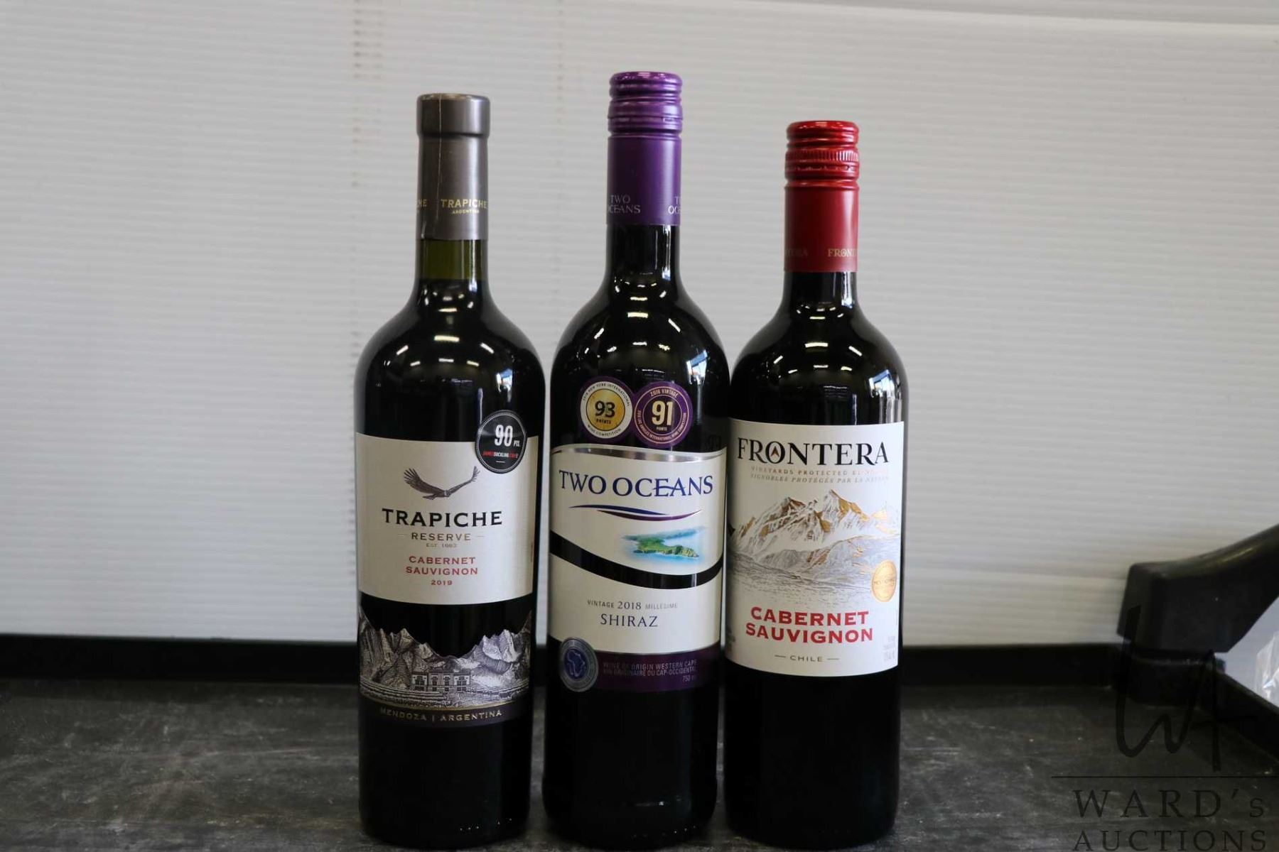 Three bottles of wine including Trapiche Reserve Cabernet Sauvignon 2019 750ml / 13.5% ABV, Two Oceans Shiraz 2018 750ml / 13.5% ABV, and a Frontera Cabernet Sauvignon 750ml / 12% ABV Note: Alcohol cannot be insured by any courier in Canada. Local pick up is recommended. Canadian bidders only