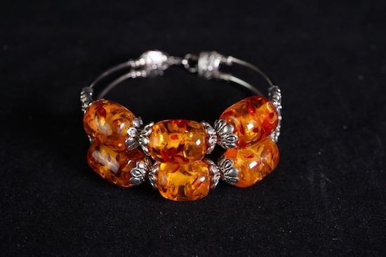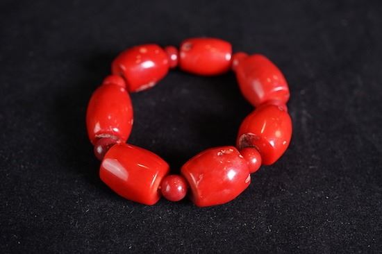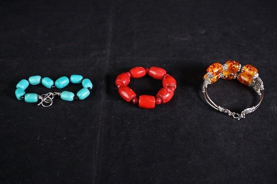 A kallaite bracelet. AAA Coral bracelet. A piebald amber bracelet. Condition as is, shown in photos. Weight: 30g; L*W: 1.3*1cm (each). Weight: 45.8g. size adjustable