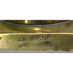 Three brass candlesticks, all with flared rim, the first with turned tapered standard on square base, the middle and last are push-up with ringed standard and eight sided bases, and both impressed England, 9 1/4" high, 6" high and 9 1/4" high Estimate 120/250