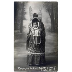 a) "Wanada Parker, daughter of Quanah Parker.... " Copyright 1904. Kruxo box. b) "Paul Kickingbird, in Buckskin Suit.... " Copyright 1911. c) "Comanche Indian Mother & Babe.... " All with Bates' stamps on back. Last two have divided backs. [4]