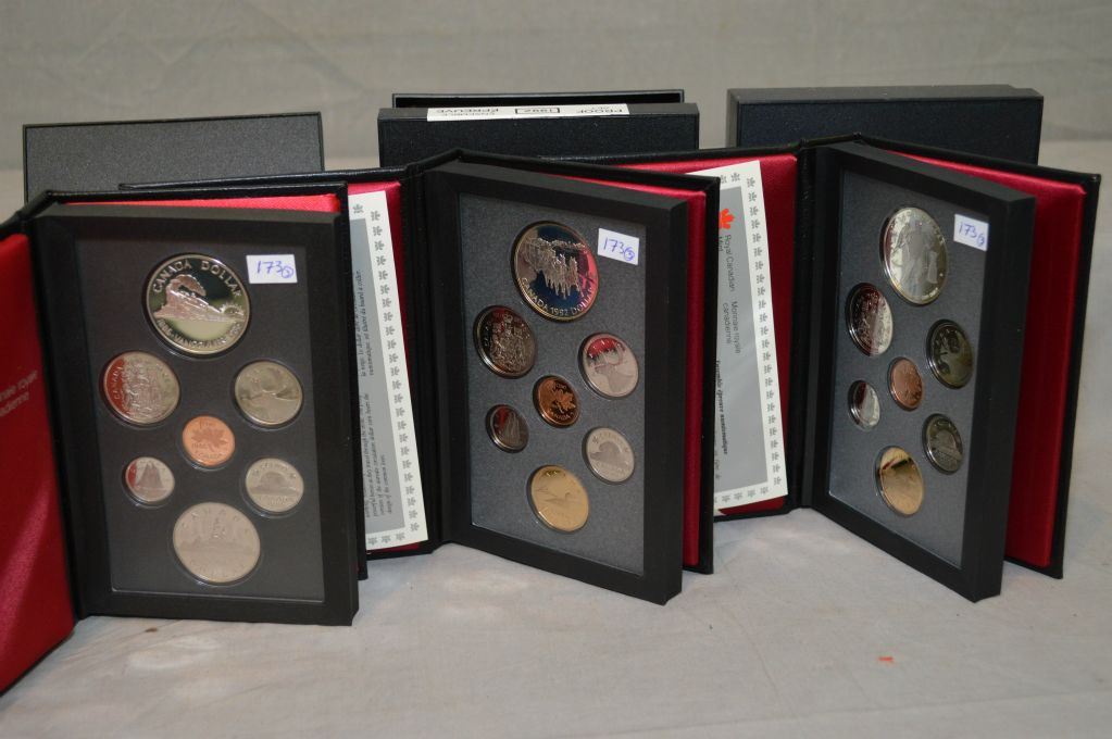 Three cased Canadian double dollar proof sets including 1986, 1992 and 1993