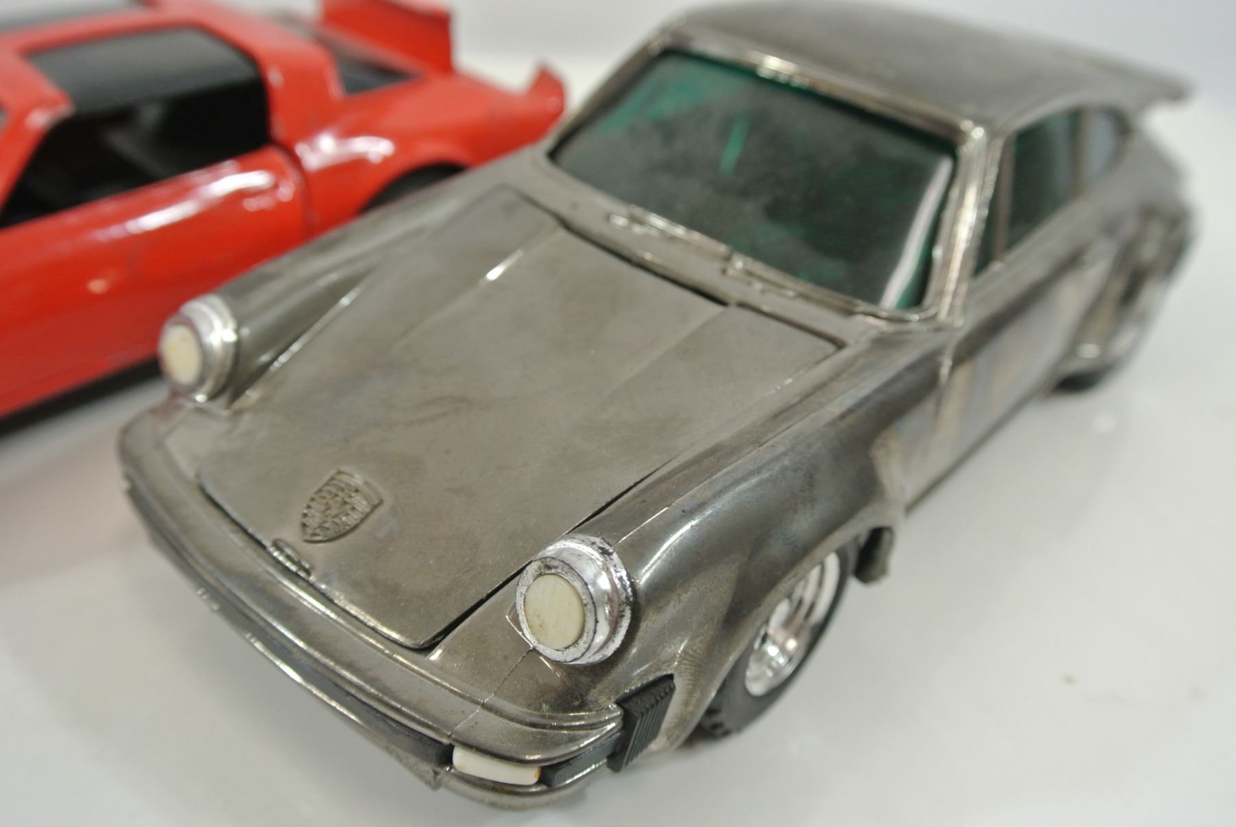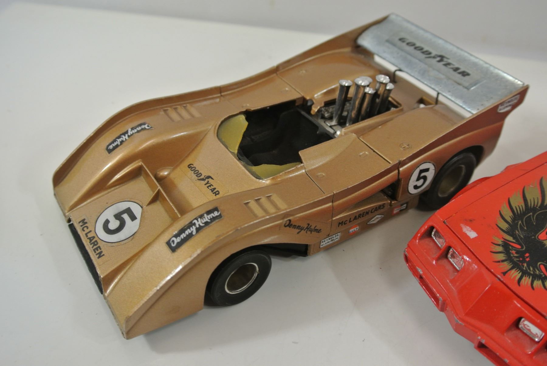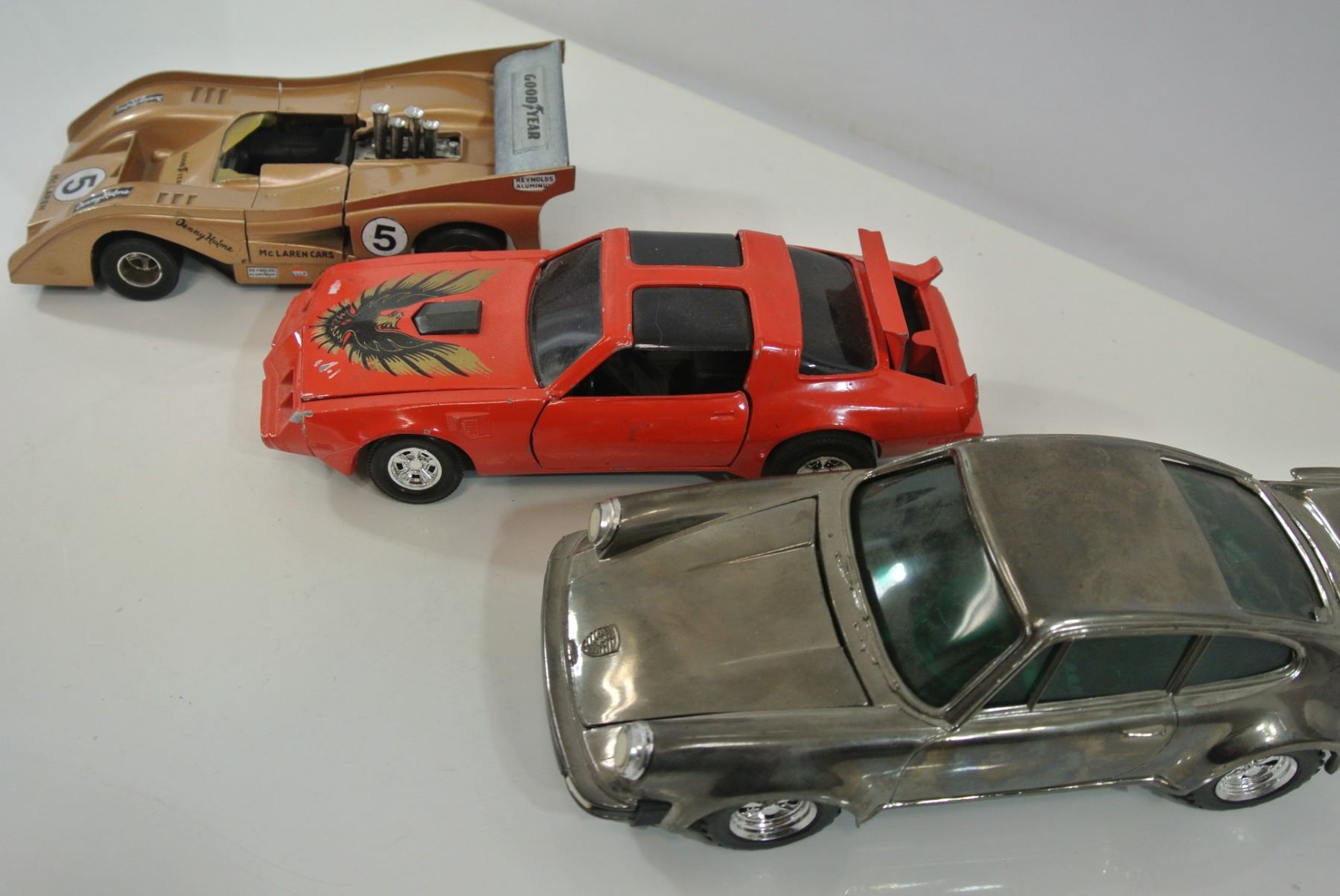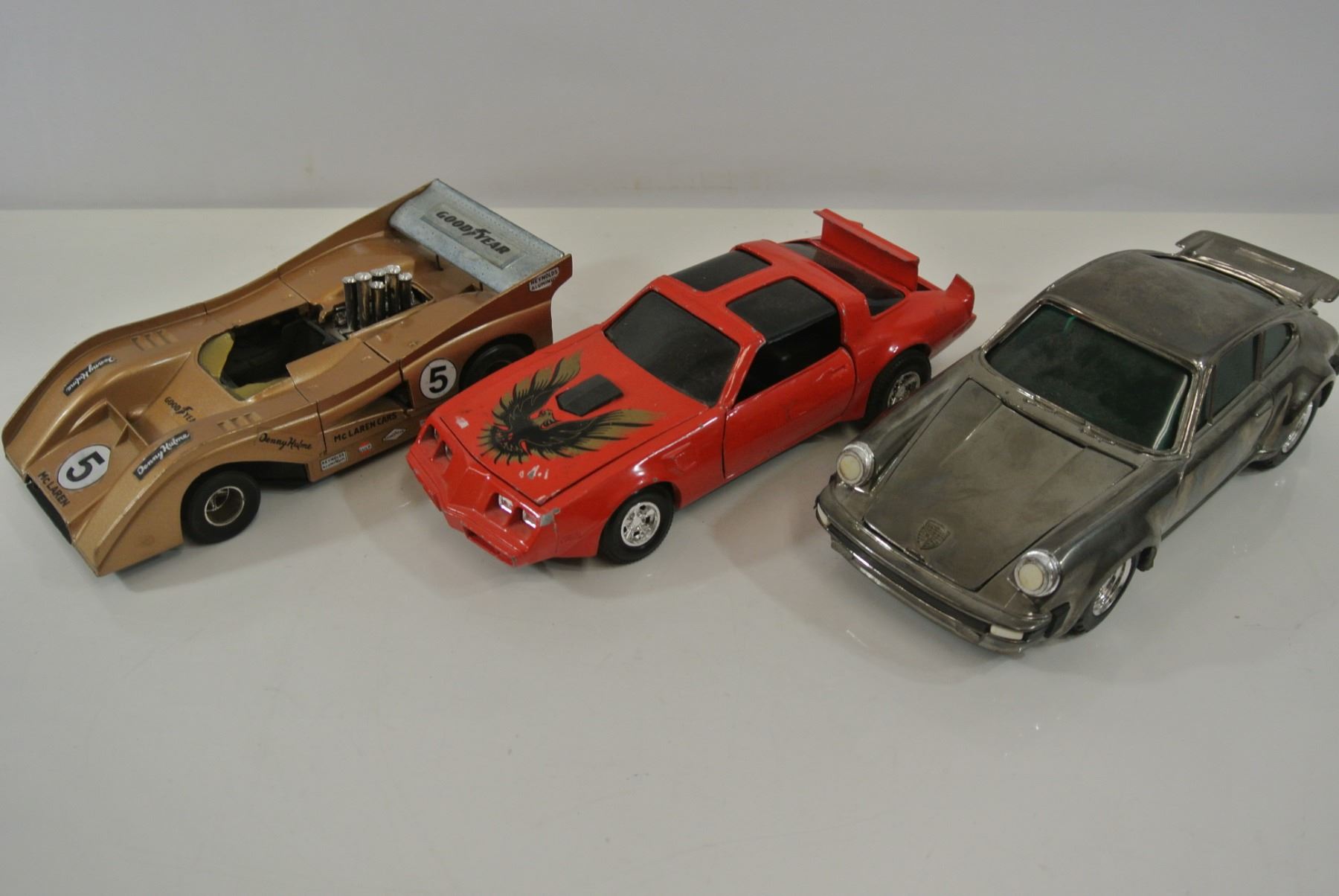 Polytoys McLaren, Yat-Ming Trans Am, Porsche radio. Wheel fallen off Porsche, needs to be glued on