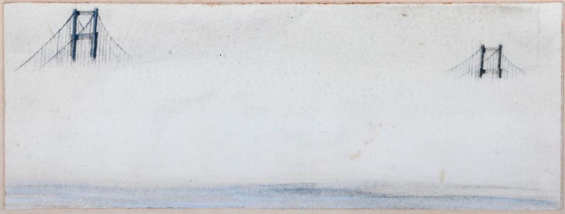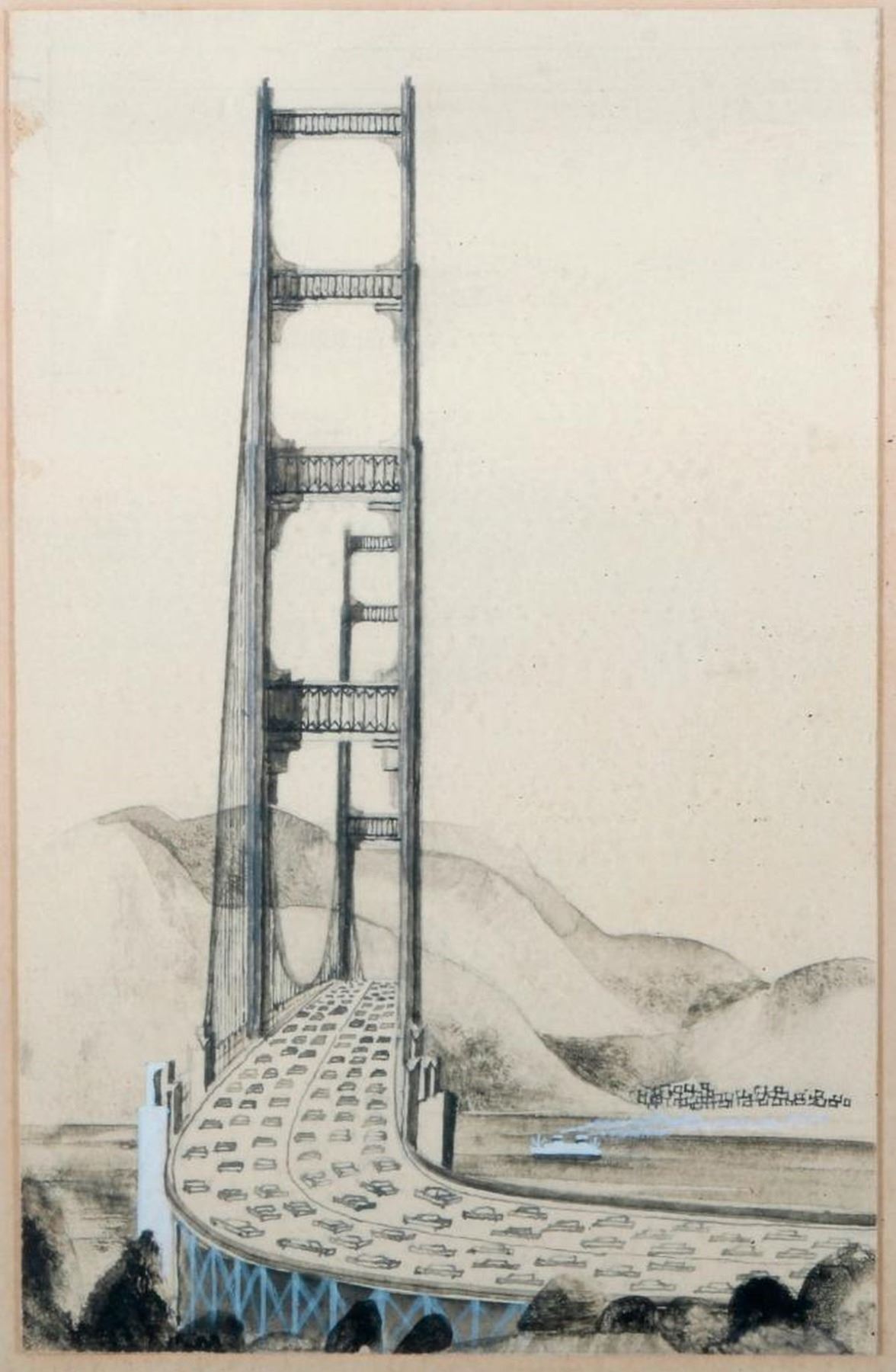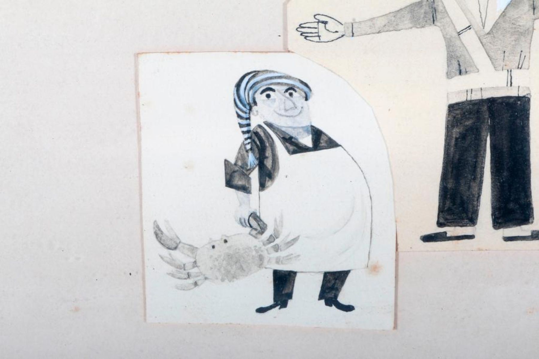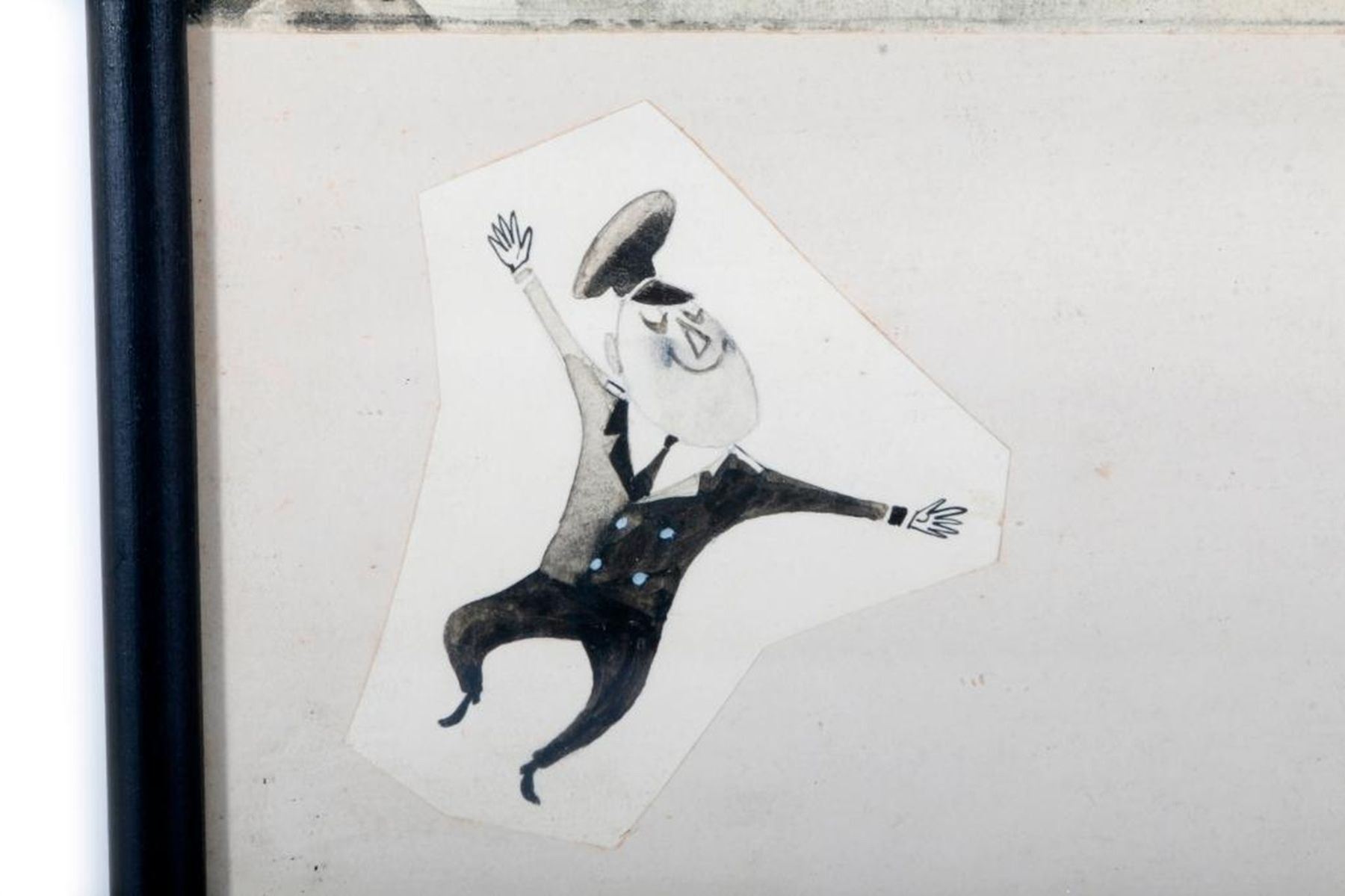 Artist: Unsigned. Subject/Title: Three pen and ink drawings of San Francisco and citizens. Date Created: Circa 1960. Size Image: 10 1/4 inches high x 8. Size Frame: 11 1/4 inches high x 9. Condition: Good.