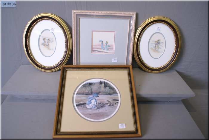 Three framed needle works and an artist proof limited edition Joan Healey "The Offering"