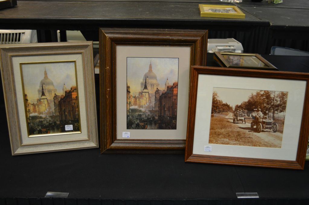 Three framed pictures including one archival labelled "Automobiling on the Groat Estate"