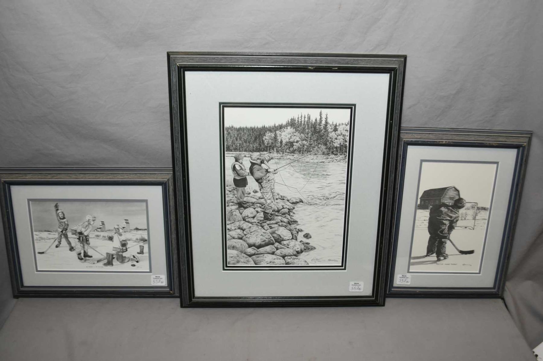 Three framed prints by artist B.J. Brown including pencil signed limited edition print "Catch of the Day" 260/795 plus a framed black and white photograph of cowboys