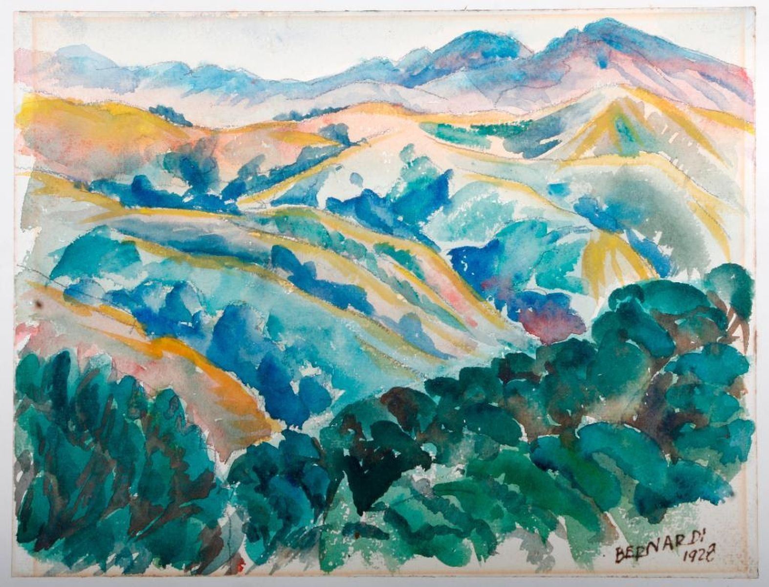 Artist: Marion Parsons (1878 - 1963), Bernardi and unsigned. Subject/Title: Three landscapes. Date Created: Mid 20th century. Medium: Pastel and watercolor. Size Image: Largest, 9 1/2 inches high x 12. Size Frame: Unframed. Condition: Good