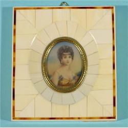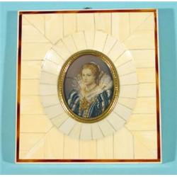 Three miniatures, colored-in engravings, Portraits, dim. resp. 15 x 13 cm., 11,5 x 10,5 cm. and 9…