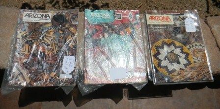 Three Arizona Highway Magazines, February 1974, the pottery issue; January 1974, turquoise issue and July, 1975, the basket issue. In dust covers. Shipping $15.00 Good condition