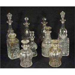 Three pairs of Victorian cut glass decanters and stoppers and four other decanters, largest 35cm