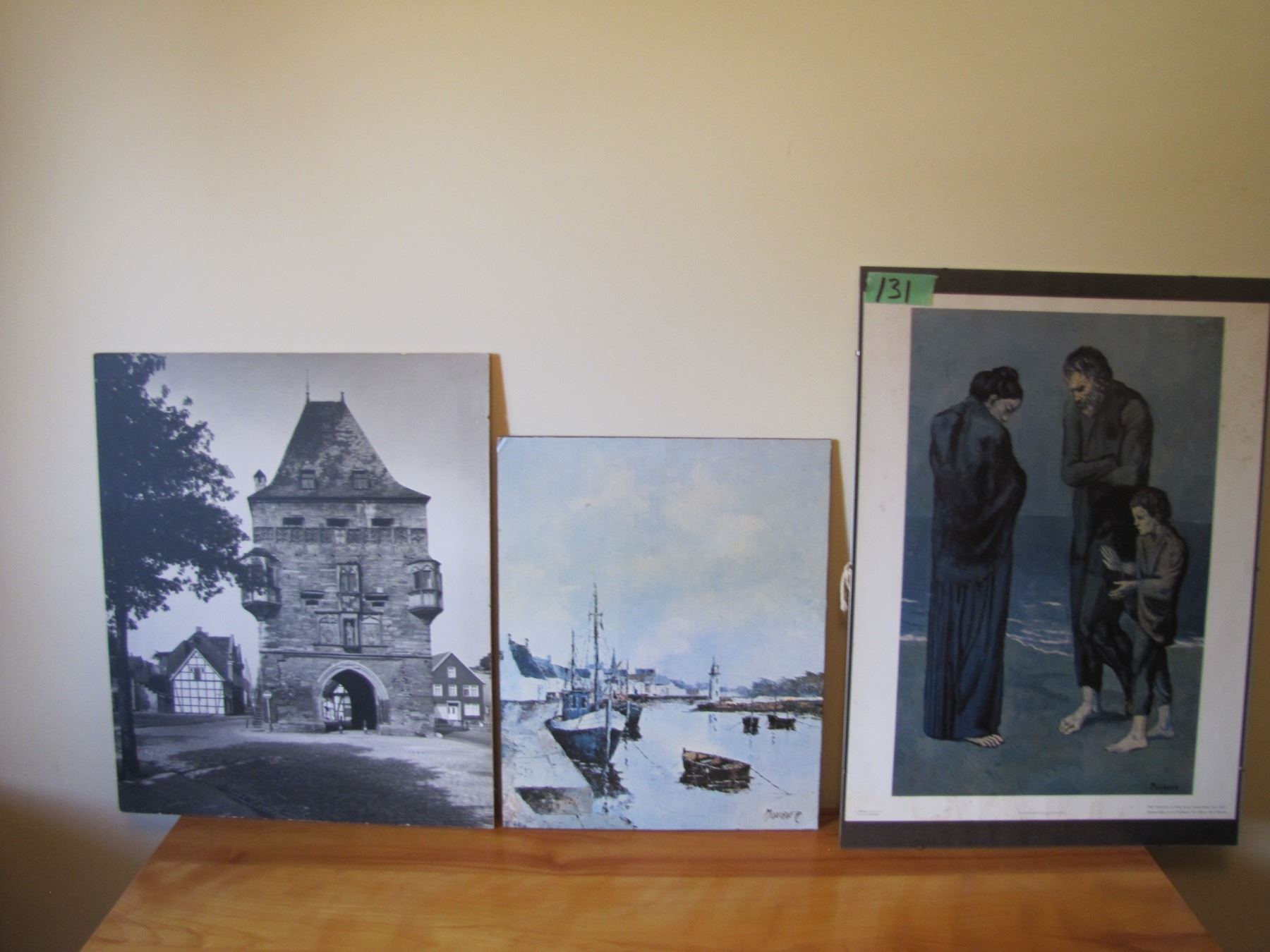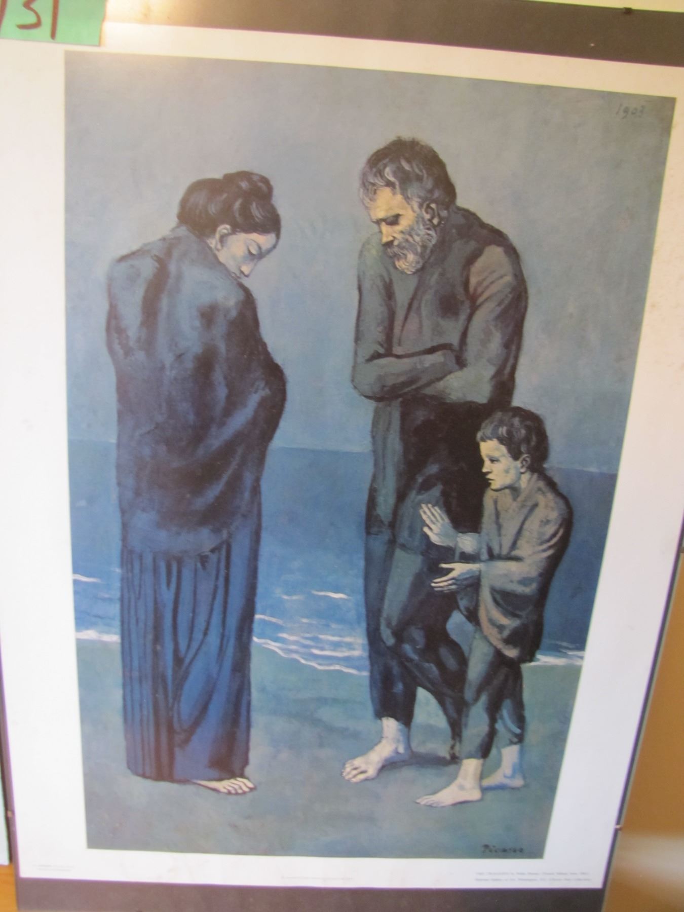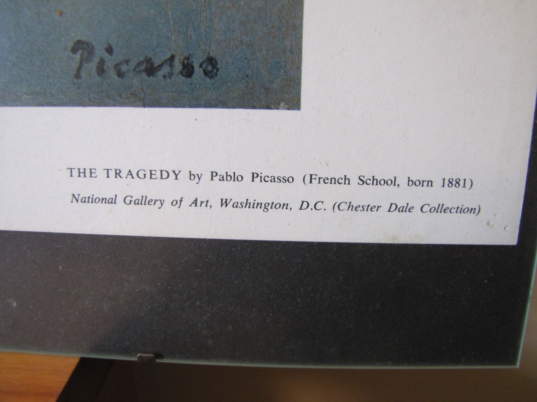 Three pieces of artwork one is THE TRAGEDY by Picasso