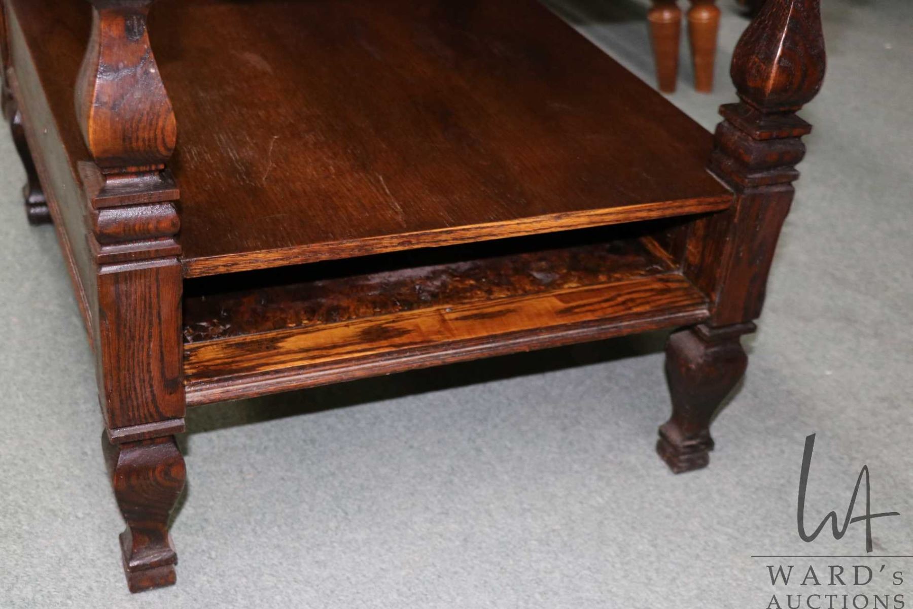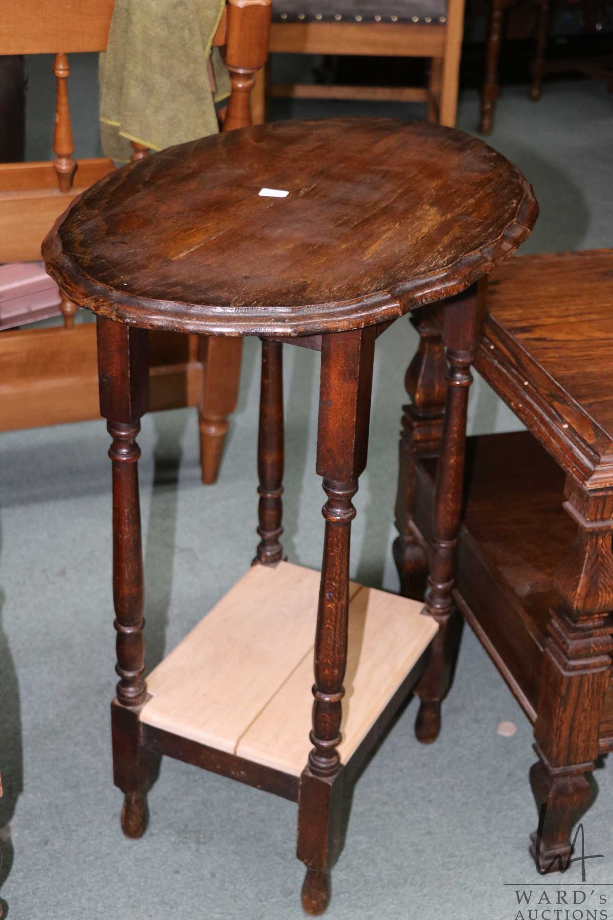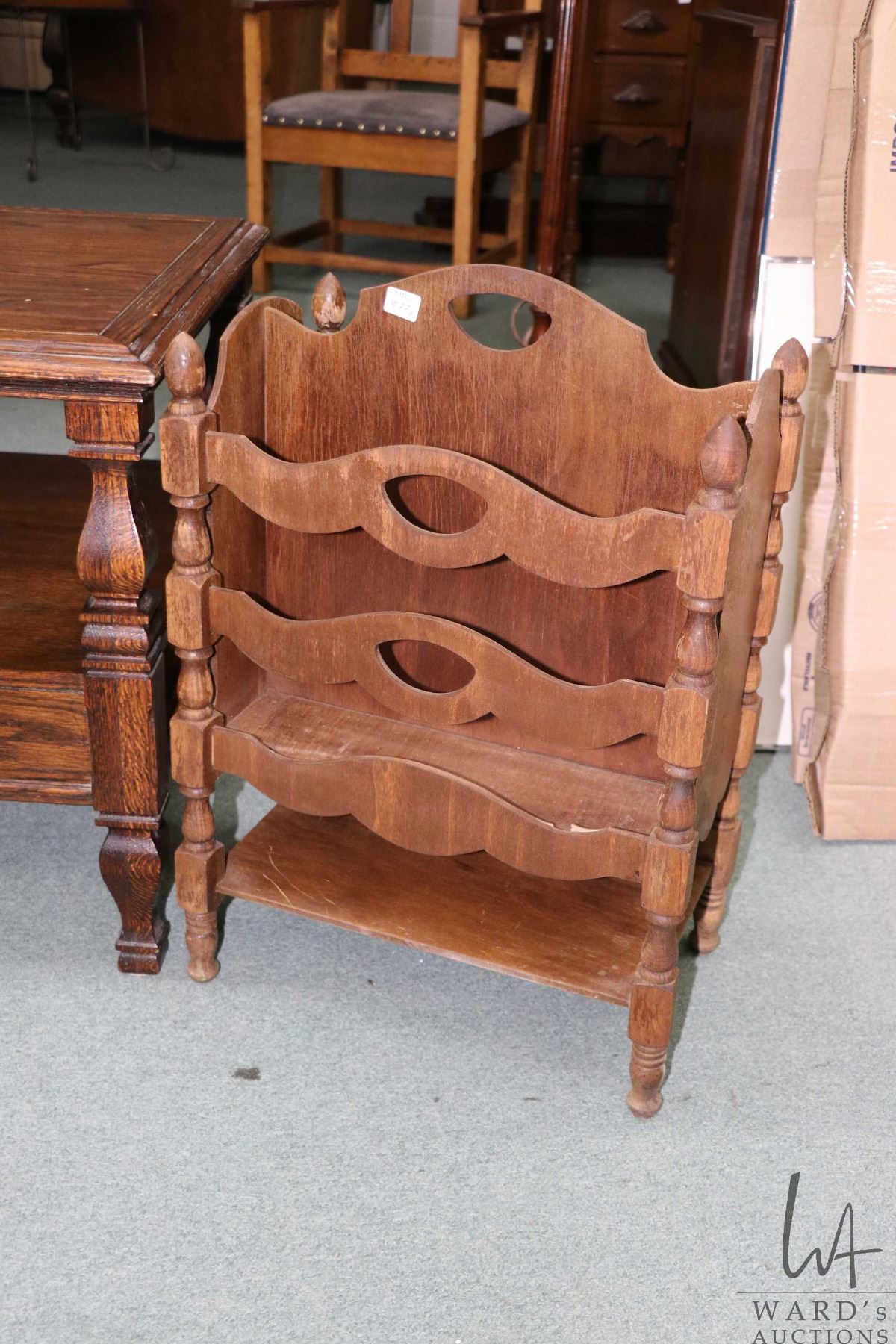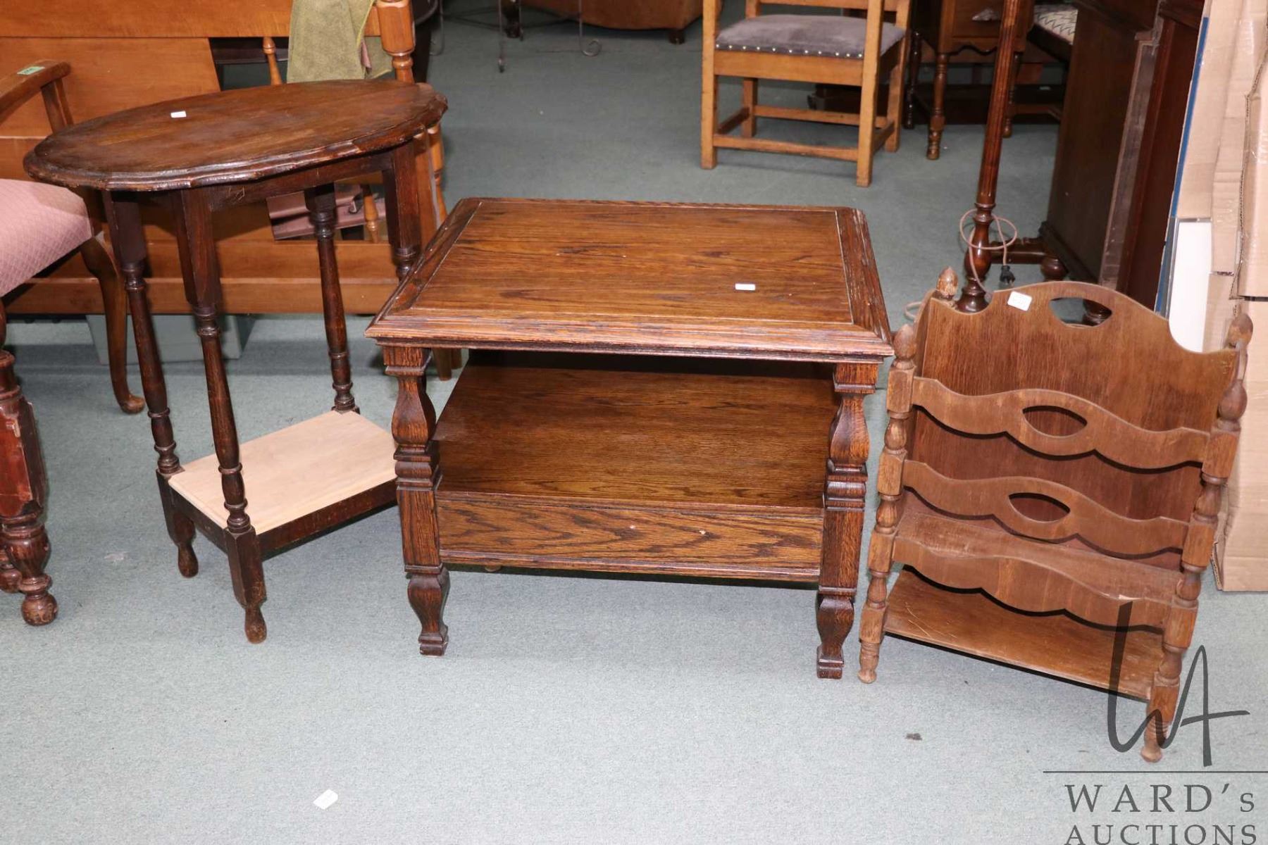 Three pieces of vintage furniture including side table, magazine rack and 29" H occasional table