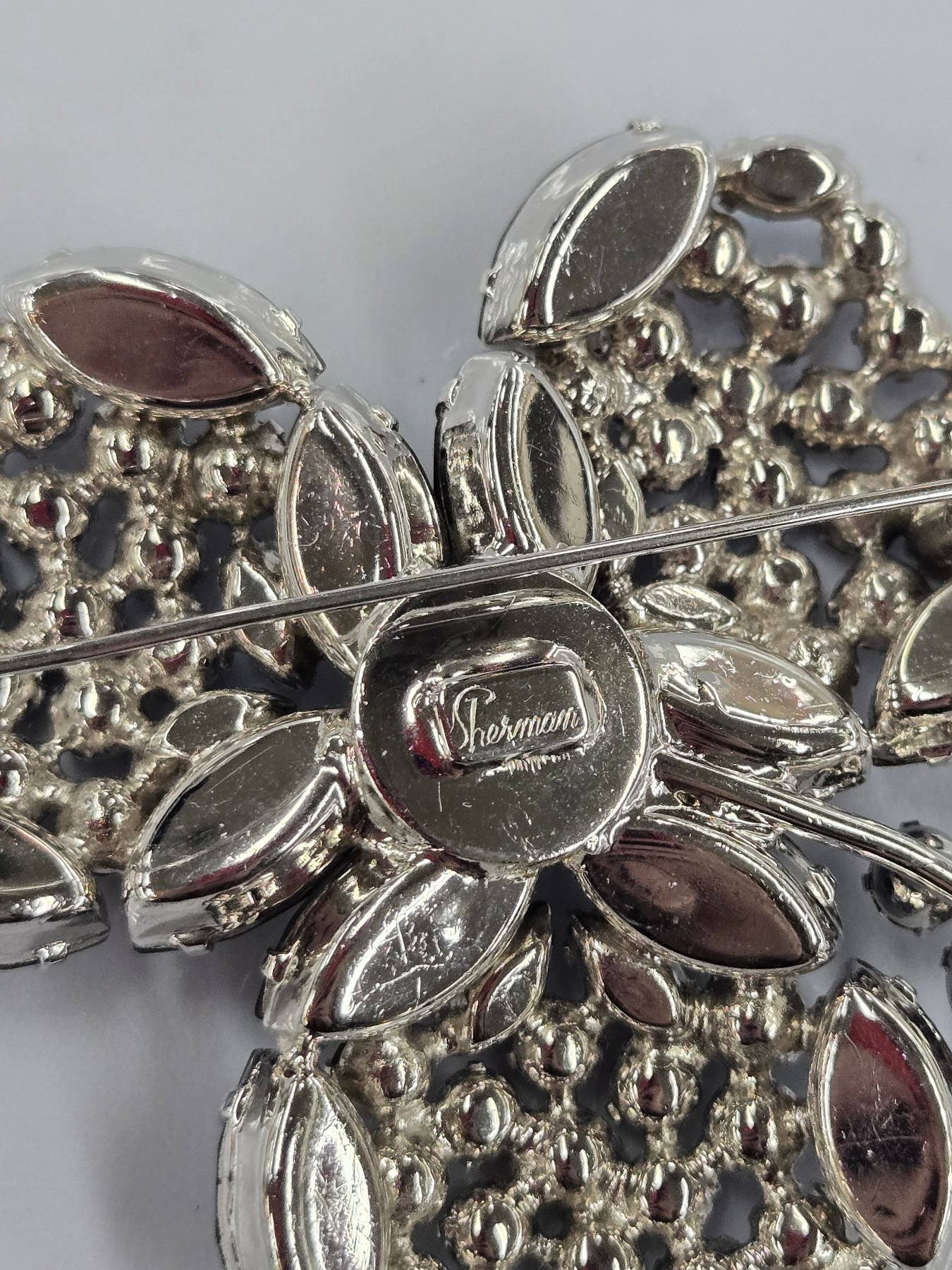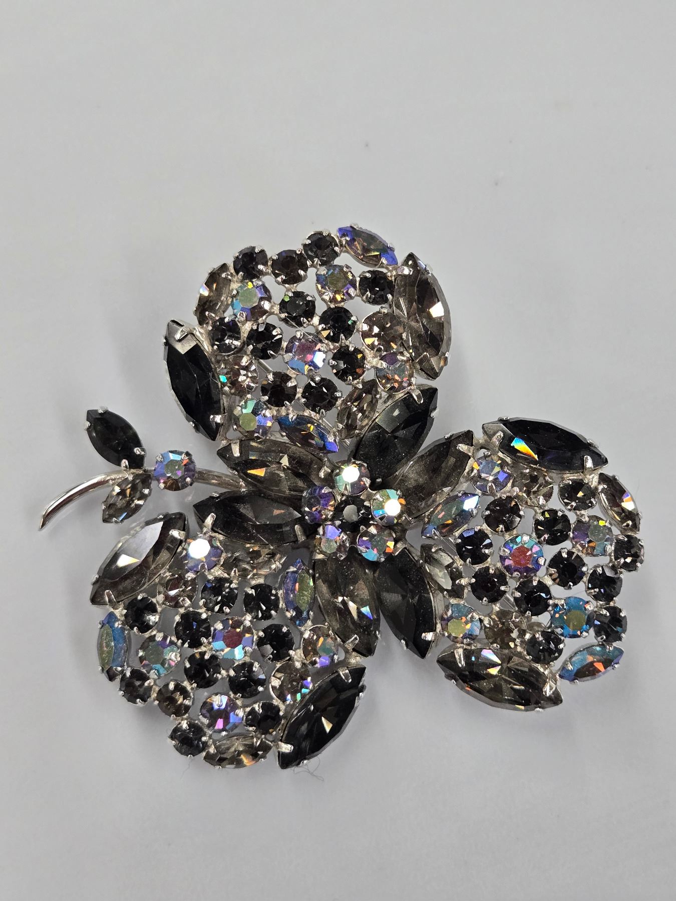 Three pieces of vintage signed Sherman jewellery including iridescent starlight three leaf clover br