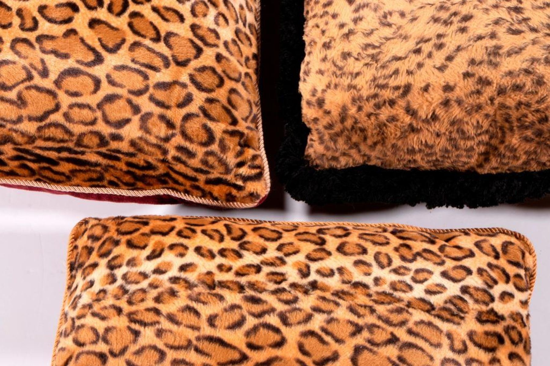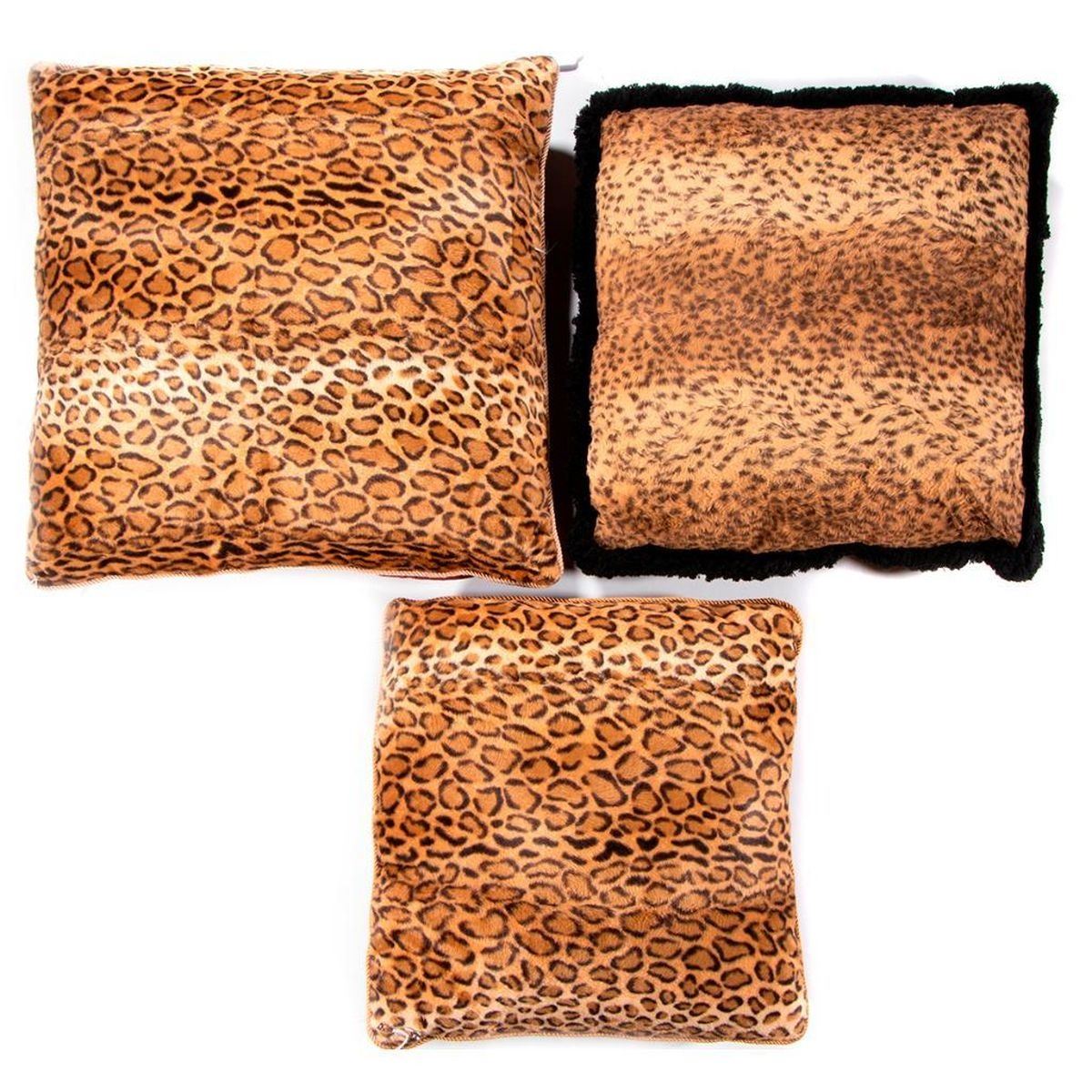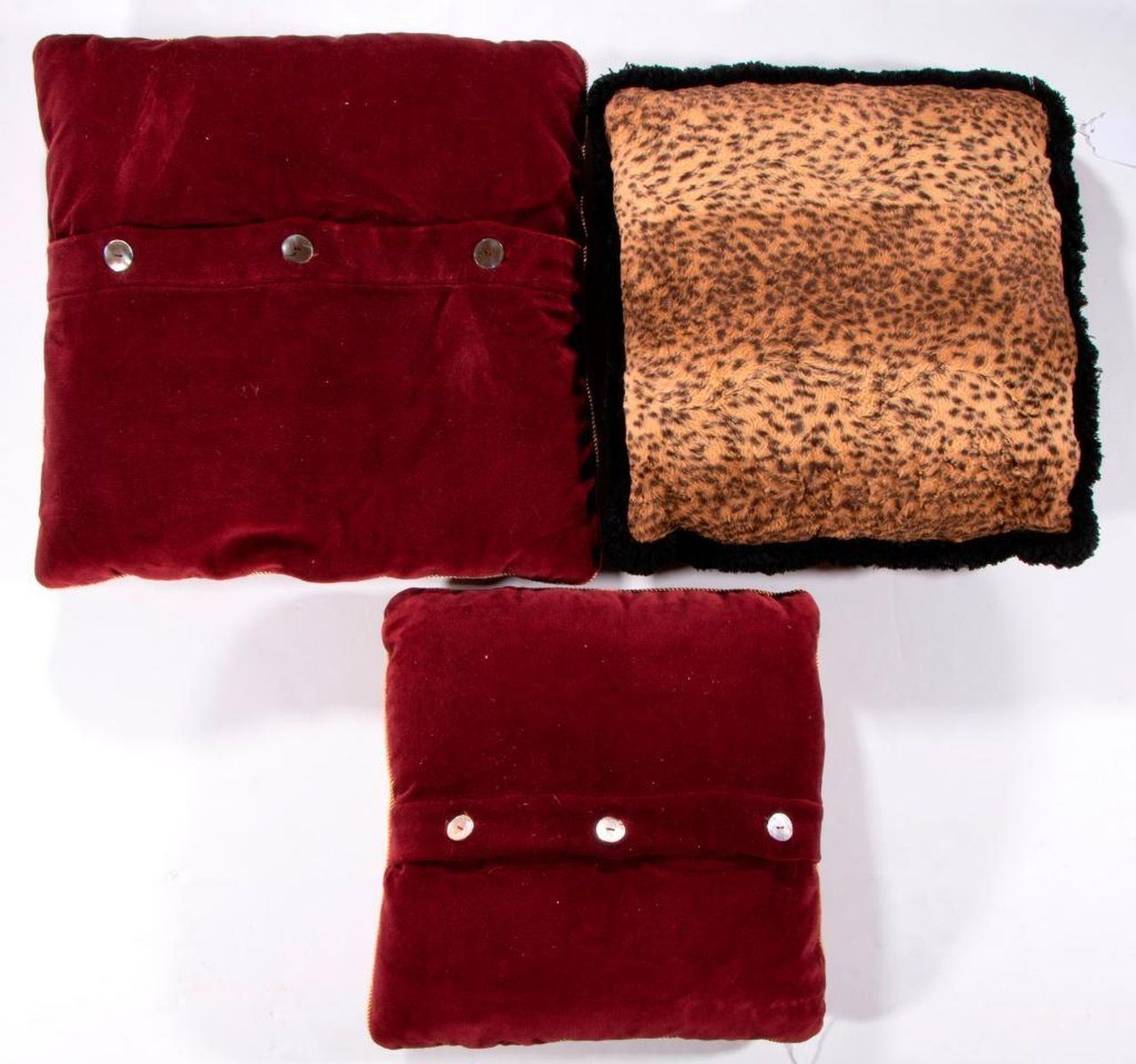 Three faux leopard skin pillows. Largest 20 inches square. Items are sold as is. Please inquire about condition if not otherwise stated.