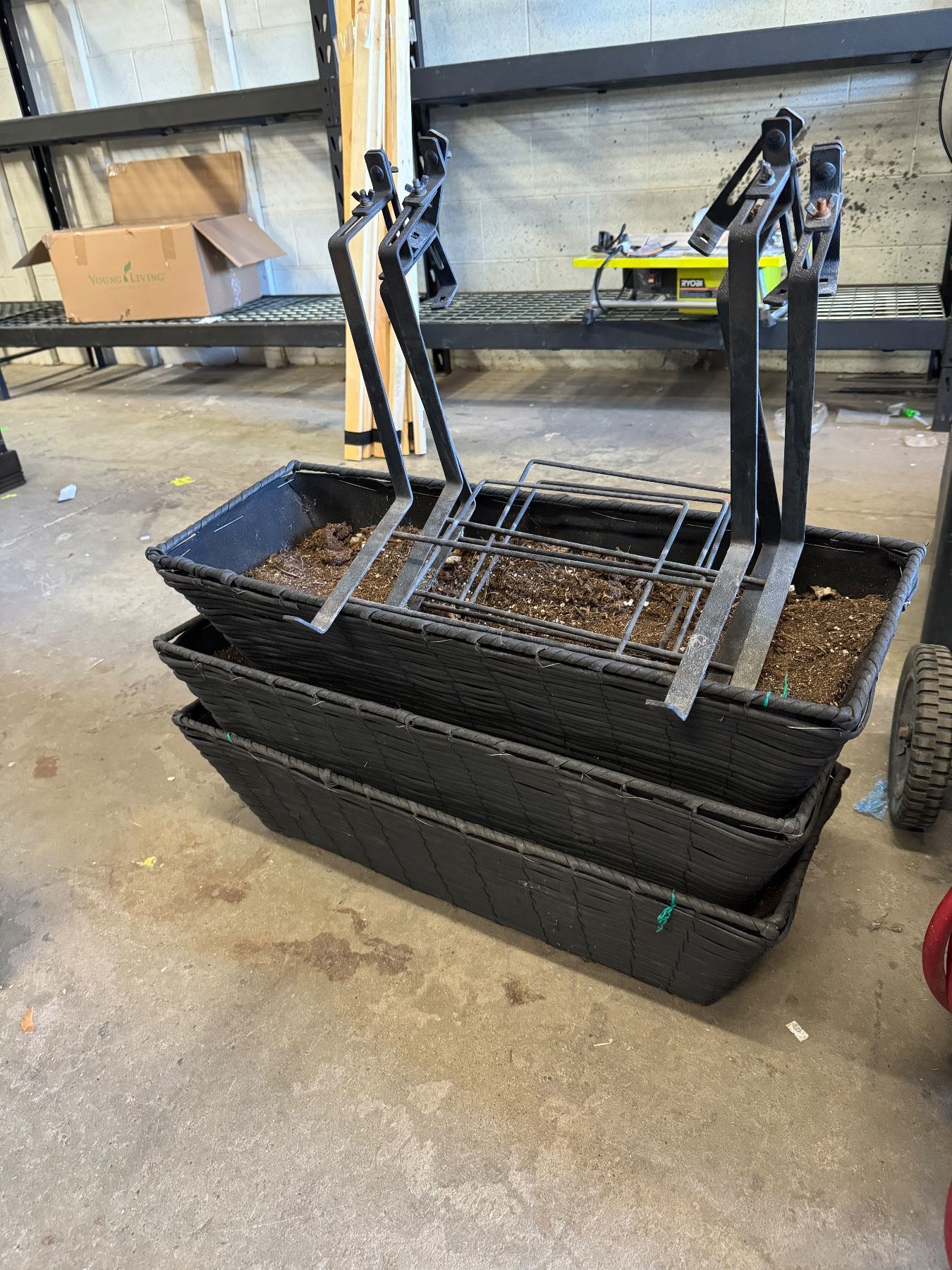 Three planters with deck hangers
