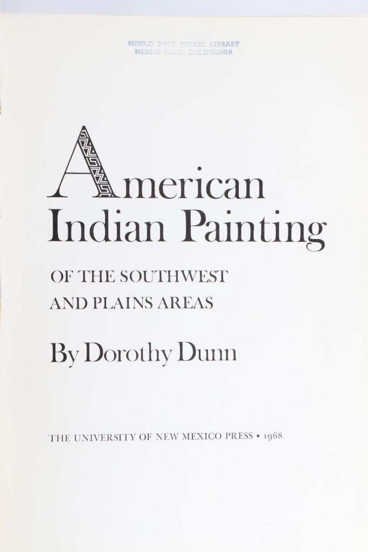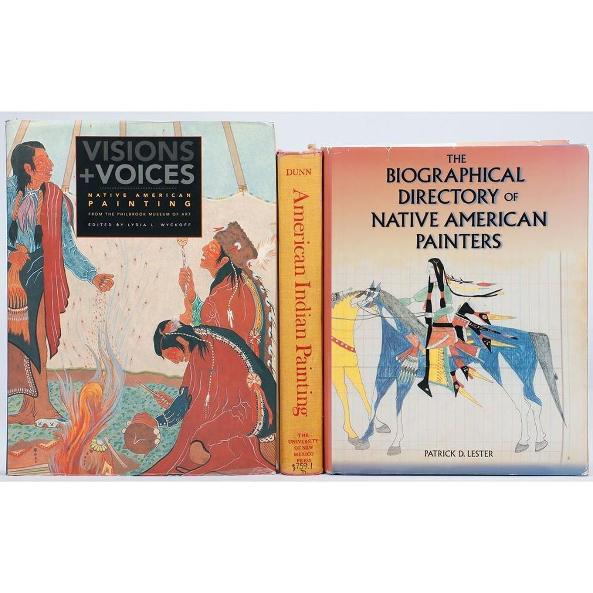 Three references on Native American painting. 1.) DUNN, DOROTHY. American Indian Painting of the Southwest and Plains Areas. Albuquerque: University of New Mexico Press, 1968. Binding split at front, spine detached, dampstaining extending about halfway through, library stamp. 2.) LESTER, PATRICK D. The Biographical directory of Native American Painters. Tulsa: Sir Publications, 1995. 3.) WYCKOFF, LYDIA L. [ED.]. Visions and Voices, Native American Painting from the Philbrook Museum of Art. Tulsa: Philbrook Museum of Art: 1996. Condition: Fair-Good; these volumes are from a well-used research library; some light toning.