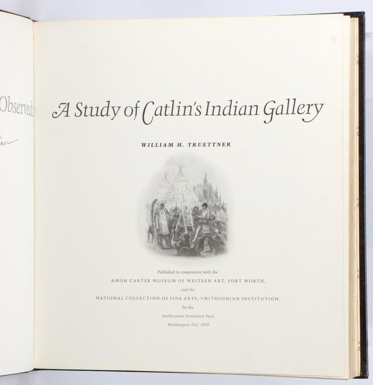 Three references on historic chroniclers of Native American life. 1.) DIPPIE, BRIAN W. George Catlin and His Indian Gallery. Washington D.C.: Smithsonian American Art Museum/W.W. Norton & Company, 2003. Small tear to dust jacket, but overall very good. 2.) McKAY, MARY TERRENCE. Karl Bodmer, Engravings from an Expedition. Exhibit booklet. Santa Fe: Zaplin-Lampert Gallery, 1991. 3.) TRUETTNER, WILLIAM H. The Natural Man Observed: A Study of Catlin's Indian Gallery. Washington D.C.: Smithsonian Institution Press, 1979. Signed by the author. Condition: Good-Very Good; the volumes from a well-used research library; some light toning.