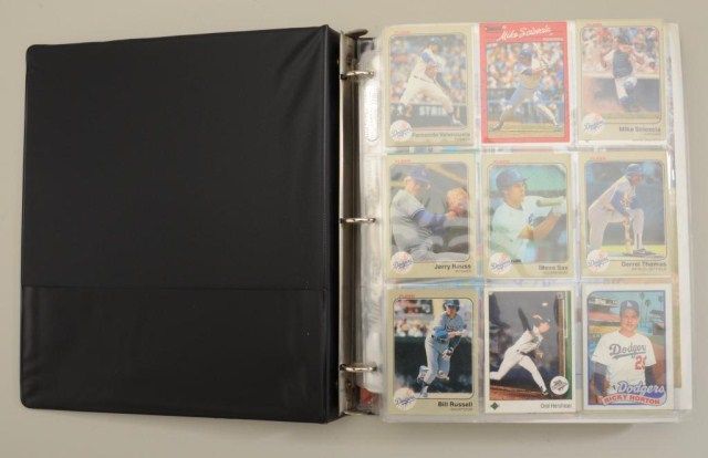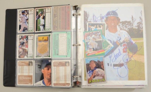 Three ring binder of nearly 400 baseball player cards in protective sleeves, representing many teams, including many favorites; also included is a signed Jay Johnstone card and 8” x 10” photo, along with signed Vida Blue and Rollie Fingers cards. Est.: $75-$125.
