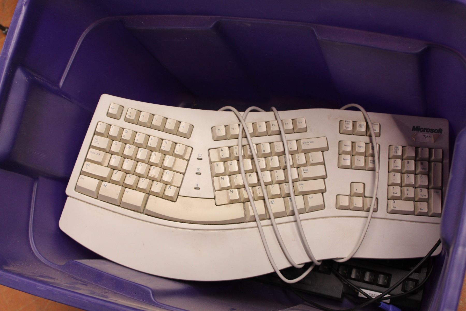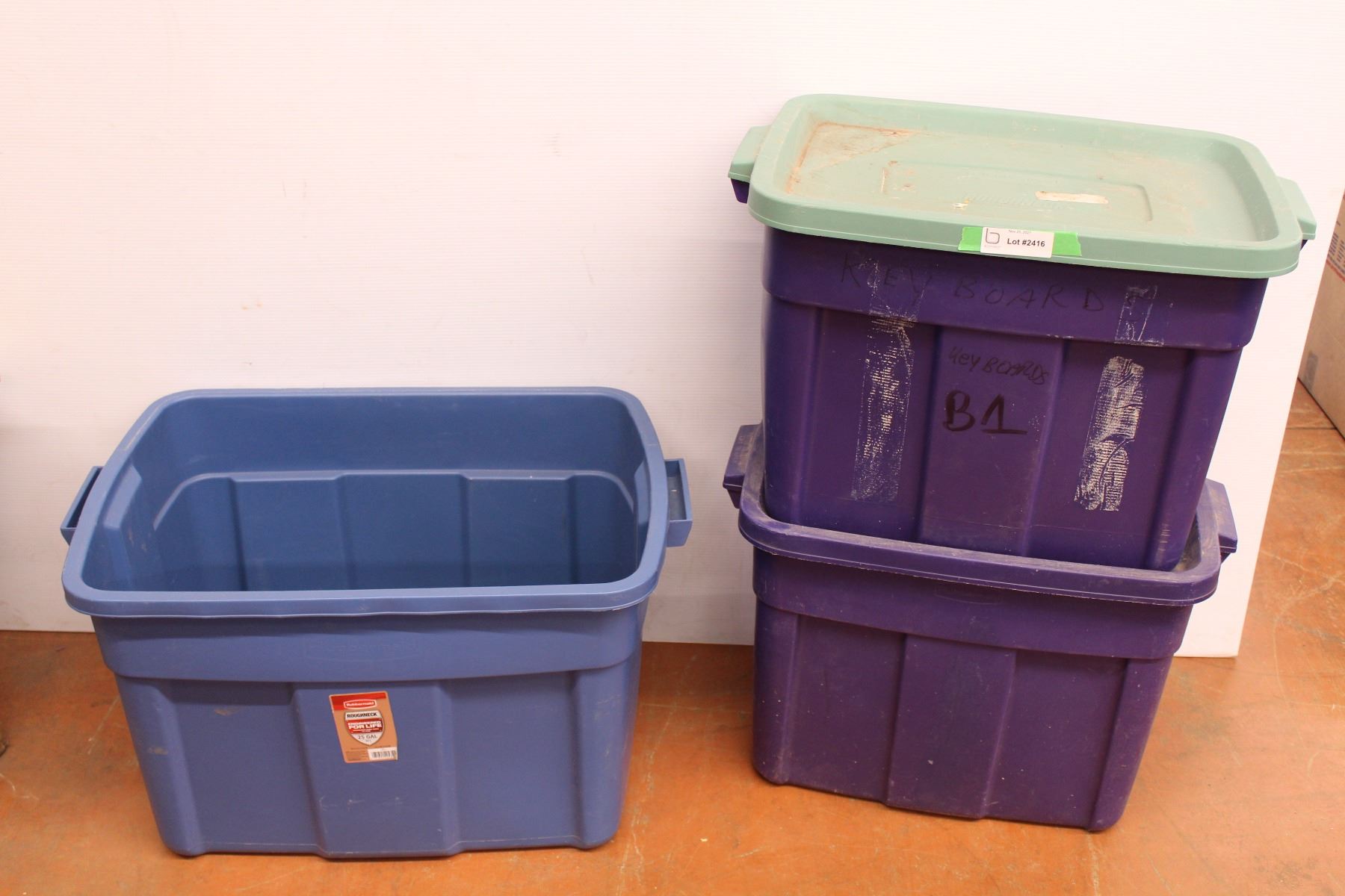*Three rubbermaid tubs, two with lids - one large without, plus two vintage keyboards