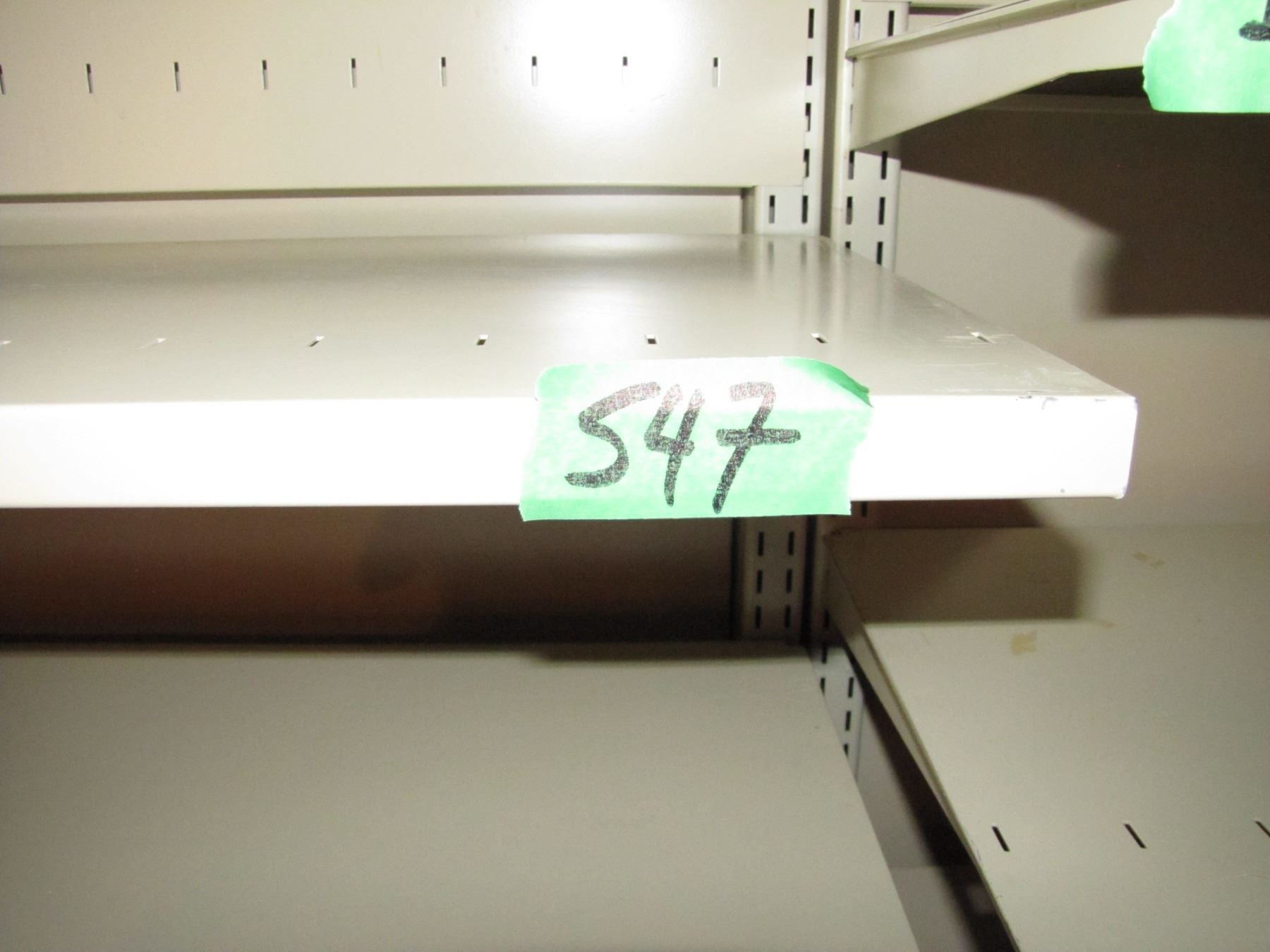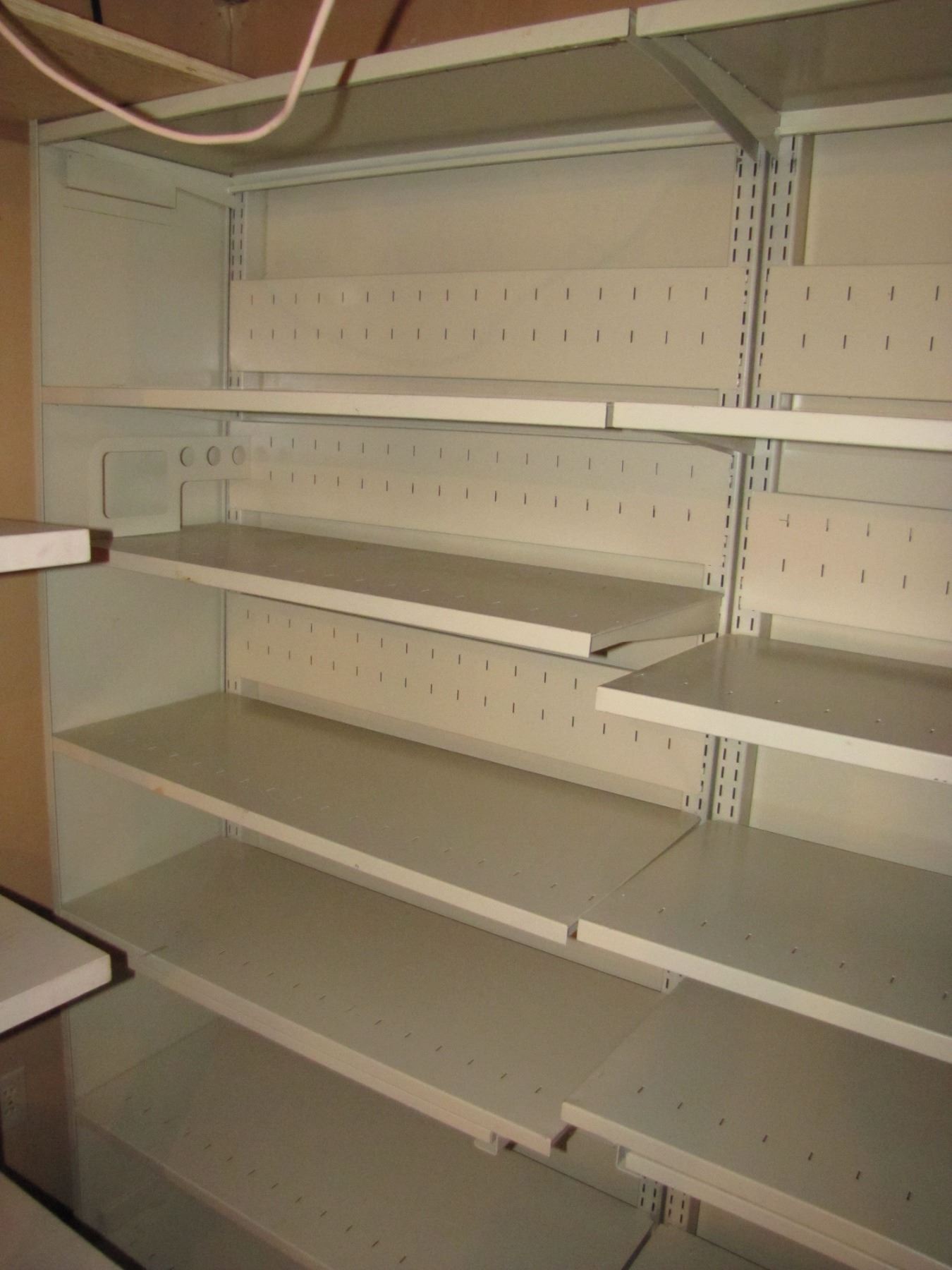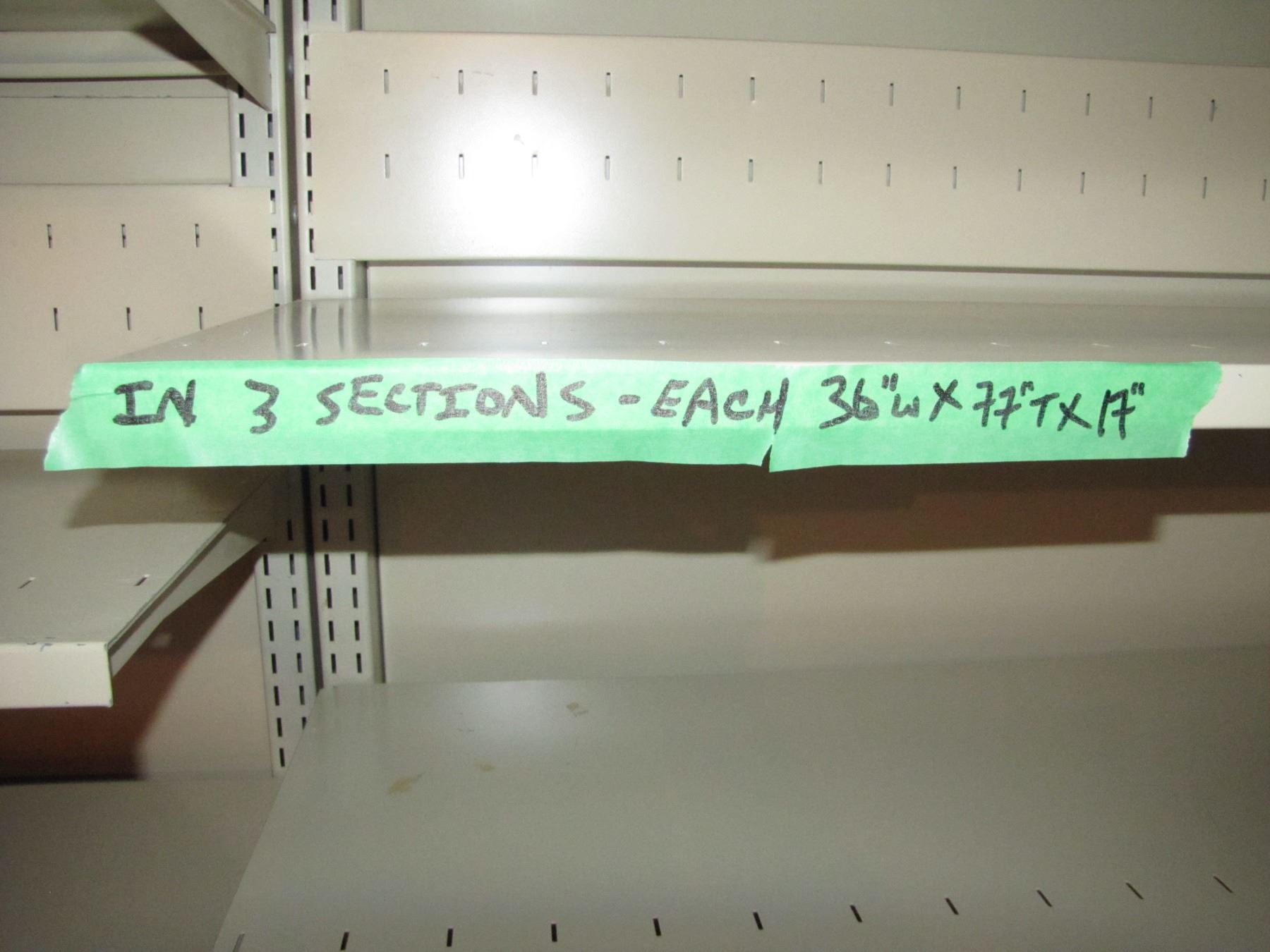 Three sections of metal shelving for storage
