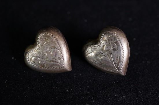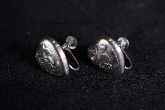 Two pairs of earings and one piece of necklace. Condition as is, shown in photos. total weight: 14.9g