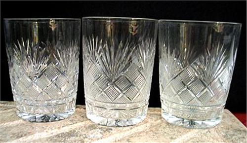 Three signed Hawkes crystal DOF's Diamond Fan design 4" tall. No chips or cracks