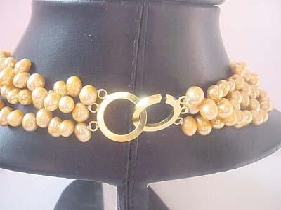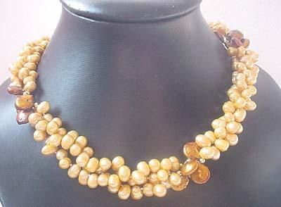 Stunning 19in Three strand Champagne Fresh Water Pearl and Brown Coin Pearl Necklace MWF1104