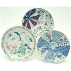 Three various Imari plates, painted in underglaze blue and enamels, 8ins £50-70