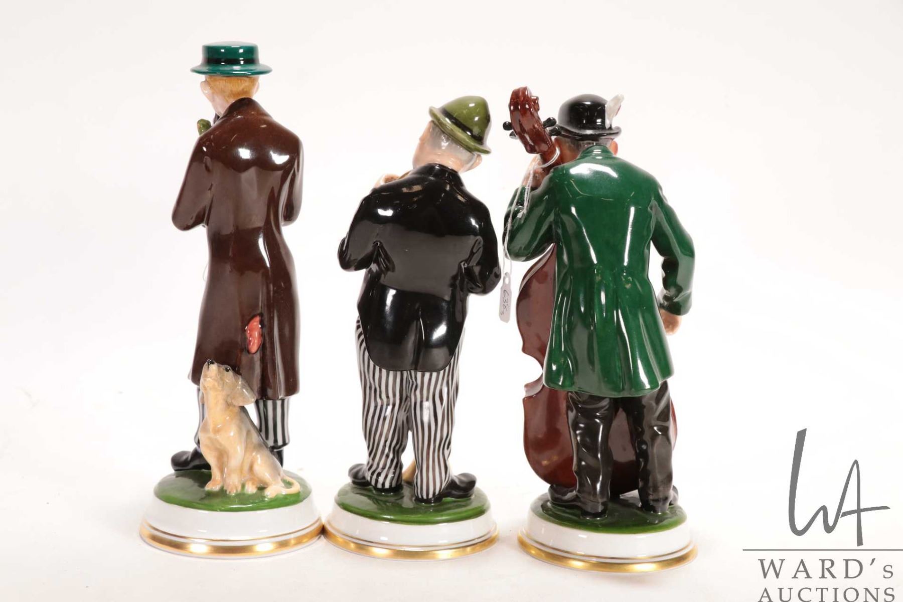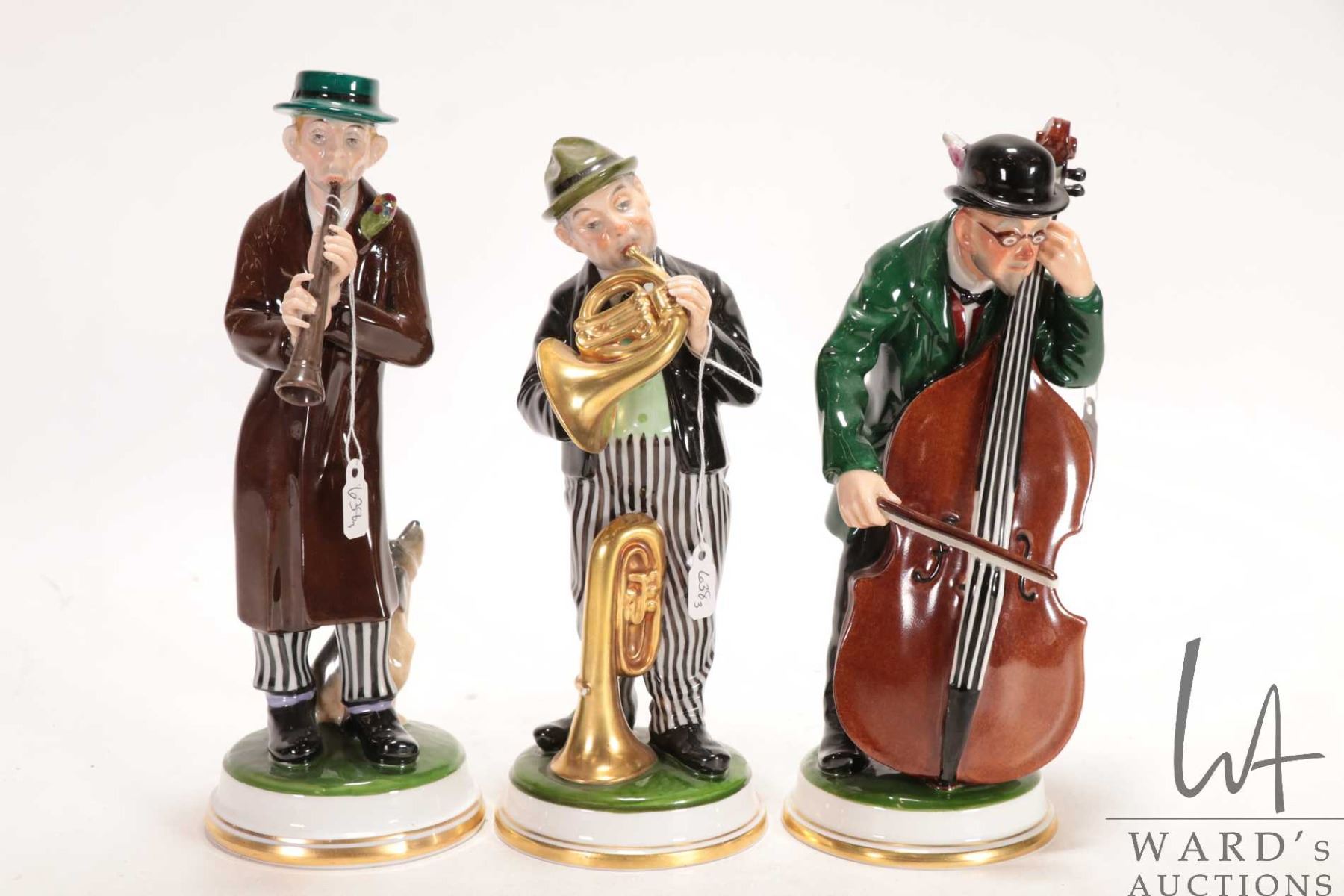 Three vintage Rosenthal musicians each hand painted and marked "Deko 7000" and each 8" in height