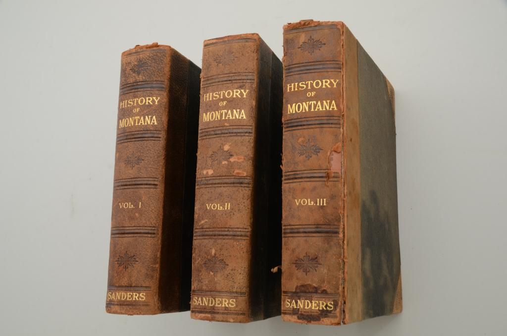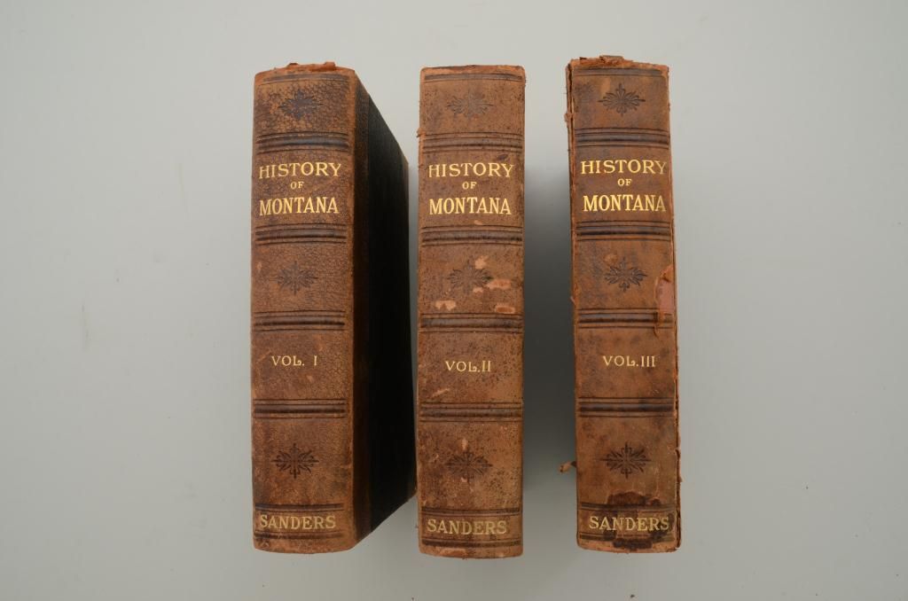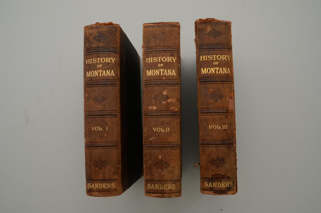 Three volumes entitled the history of Montana by Helen Fitzgerald Sanders, published by the Lewis publishing Company 1913. All in good condition and original first editions. The bindings shows some minor scuffs anddeterioration’s at the edges with one back on volume 3 ripping and becoming detached. A scarce three volume set printed right at the end of the old West. Estimate $300-$600.