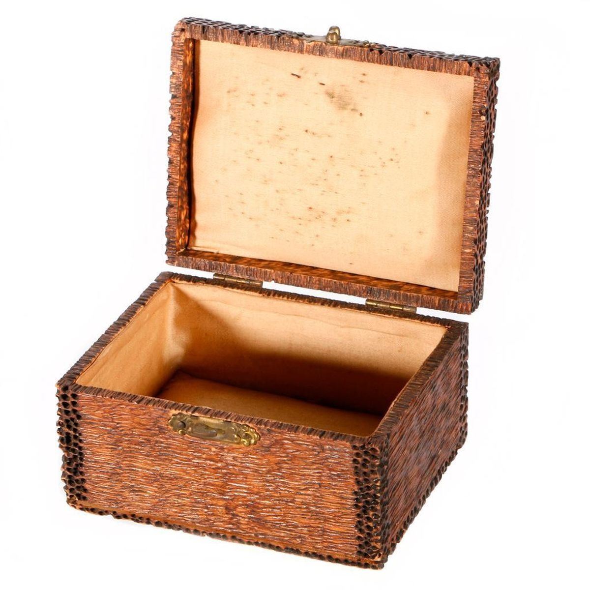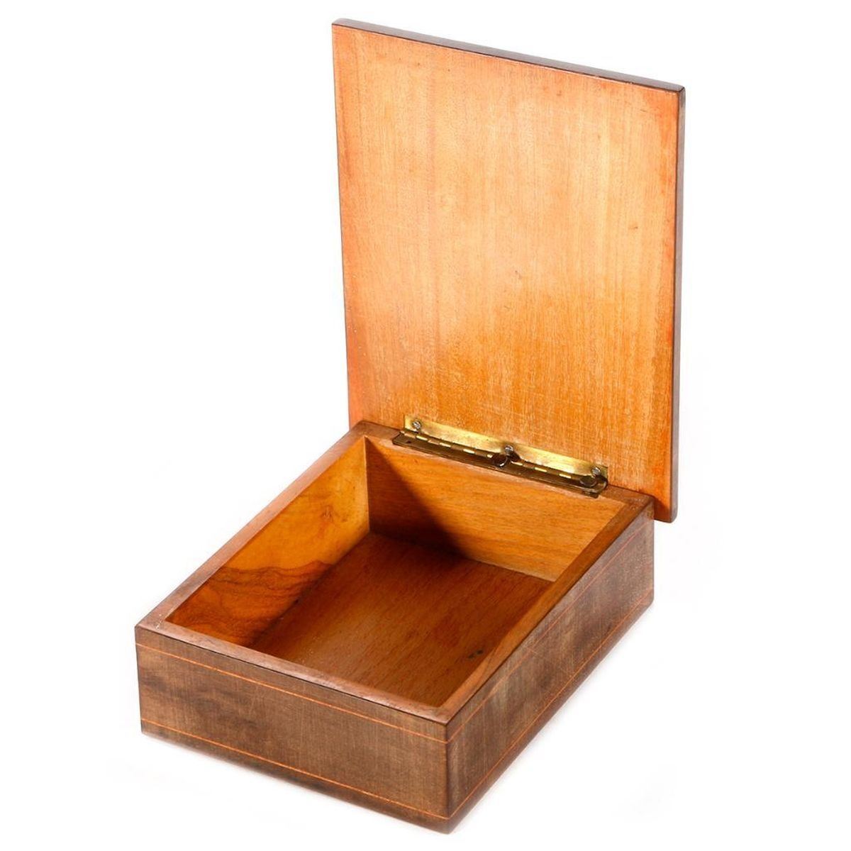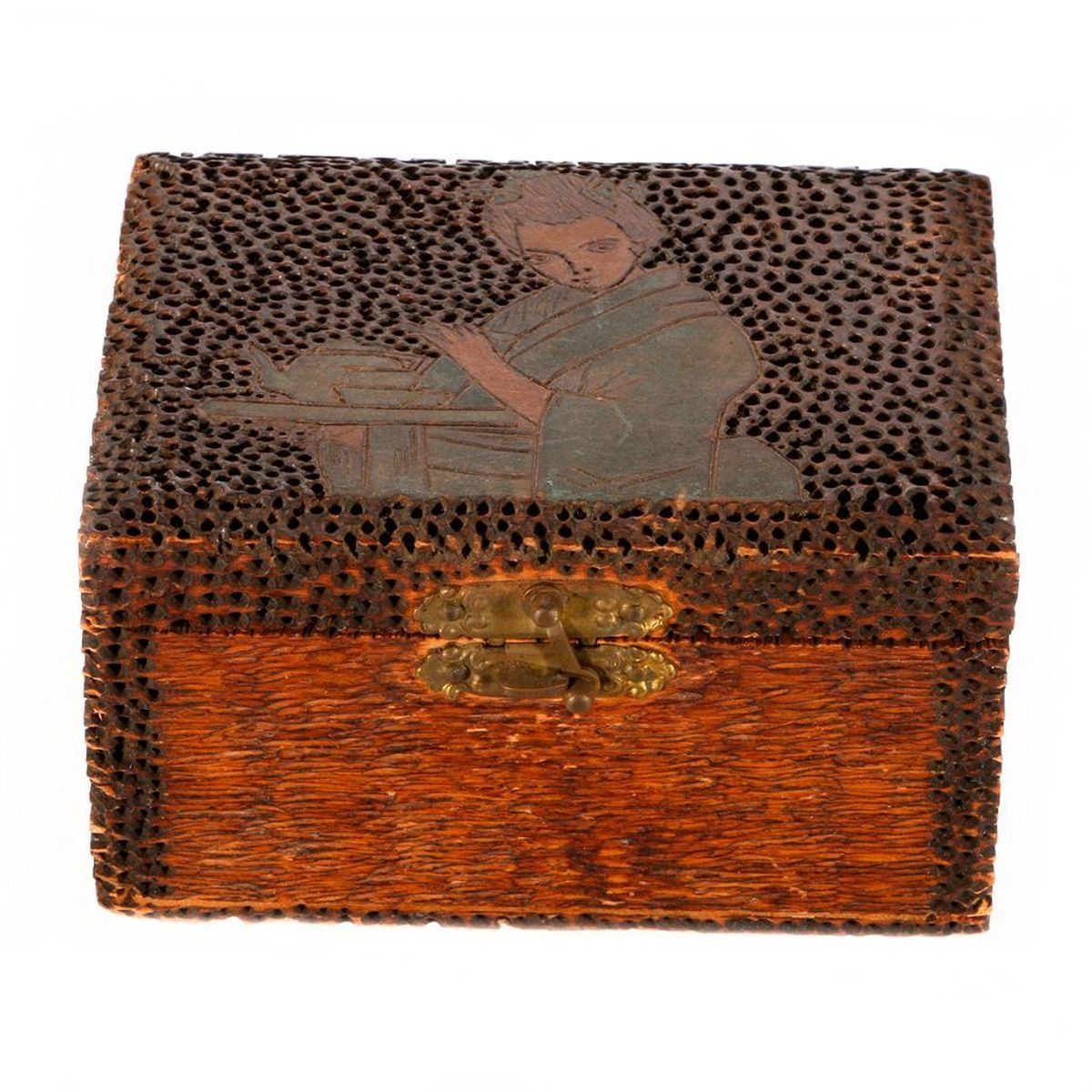 Three early 20th century boxes: an Italian inlaid box, a Japanese folk art box, and an Indian quill box. The largest box measures 2 1/2 inches high x 5 x 3 3/4.