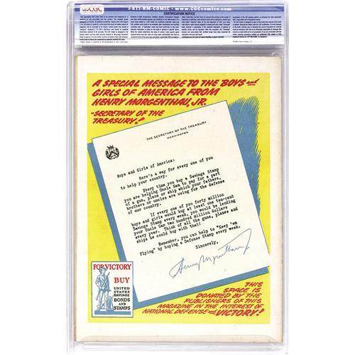 50. Since we cannot examine encapsulated notes or comics, they are sold "as is" without our grading opinion, and may not be returned for any reason. Auctioneer shall not be liable for any patent or latent defect or controversy pertaining to or arising from any encapsulated collectible. In any such instance, purchaser's remedy, if any, shall be solely against the service certifying the collectible.