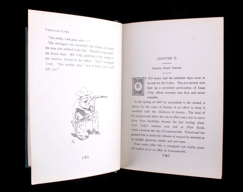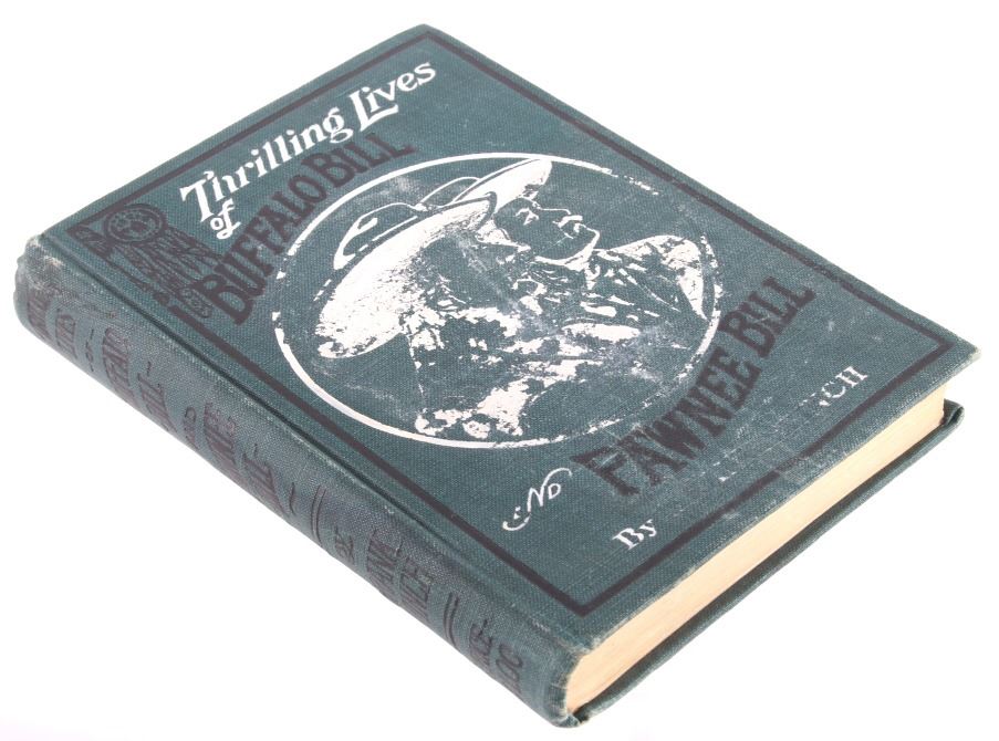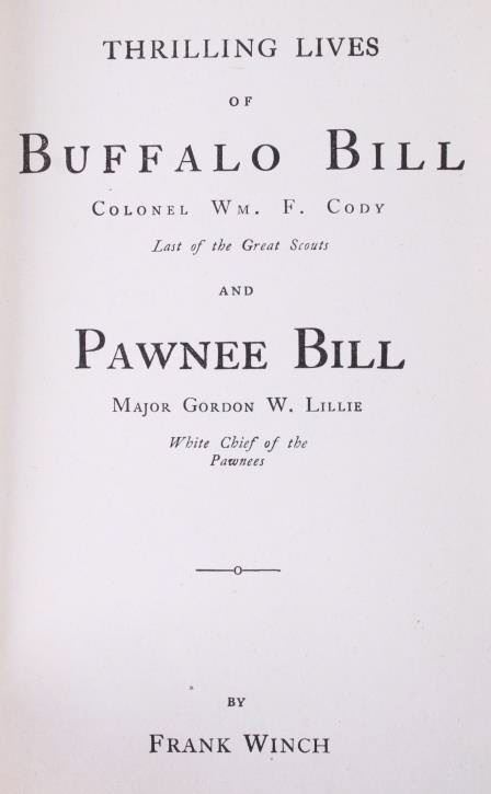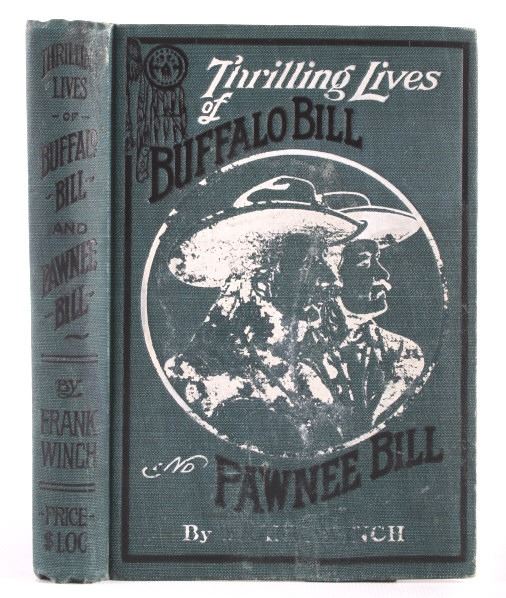 This is a scarce early edition of Thrilling Lives of Buffalo Bill and Pawnee Bill by Frank Winch. The book features a wonderfully decorated cover with numerous illustrations inside. The book is in good condition. It measures 5.25" x 7.5".