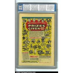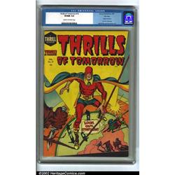 Thrills of Tomorrow #19 File copy (Harvey, 1955) CGC VF/NM 9.0 Cream to off-white pages. Jack Kirby provides the cover, and inside you will find the origin of Stuntman, reprinted from the comic book of the same name from 1946. The prolific Kirby spent most of the 1950s whipping out classy work for DC, moved to work primarily for Marvel toward the end of the decade, and managed to help out some other publishers like Harvey over the entire decade as well. This is one exceptional copy from Harvey's files. According to CGC's census, this is the best grade they have given this particular issue. Overstreet 2002 NM 9.4 value = $310. Important notice: We expect to be auctioning lots at the rate of 200-250 per hour. Sometimes eBay Premier live bid software cannot keep up with that pace, so we strongly recommend that you place a realistic proxy bid now as insurance to avoid disappointment. Also please note that all Heritage/CAA lots purchased through eBay Premier carry a 20% Buyer's Premium.