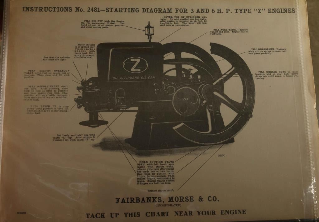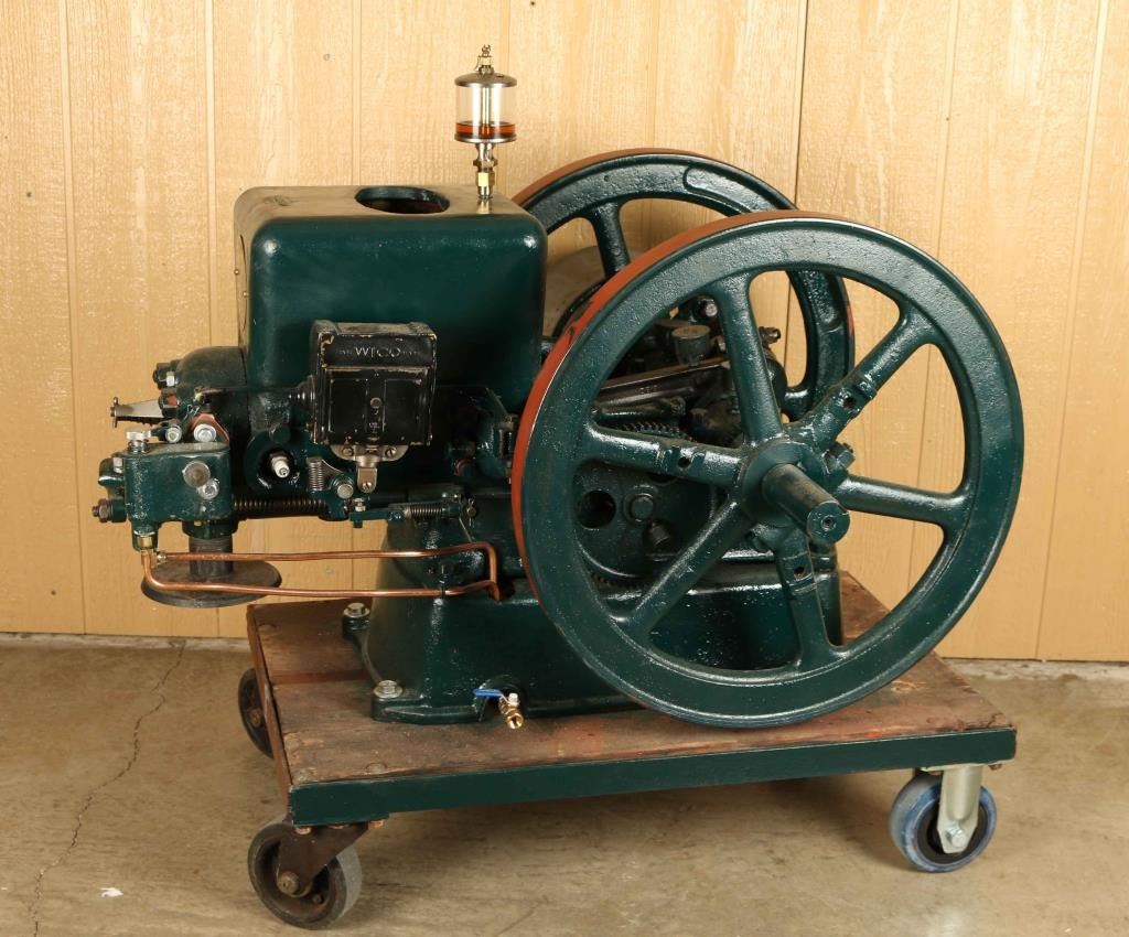 & Co. 'Z' type Hit and Miss engine mounted on wood base with industrial wheels. Comes with manual for '3 & 6 H.P. Type Z Motors'.