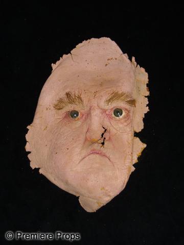 Throw Momma from the Train (1987) - A stunt mask of actress Ann Ramsey who played Momma. A highly detailed mask with eyes and punched eyebrows. This mask was worn by a stuntman, who doubled for Mrs. Ramsey. Aging and delicate, part of mask is folded under. This is a front face mask, not full head, made to wear with a wig. 10" x 6"