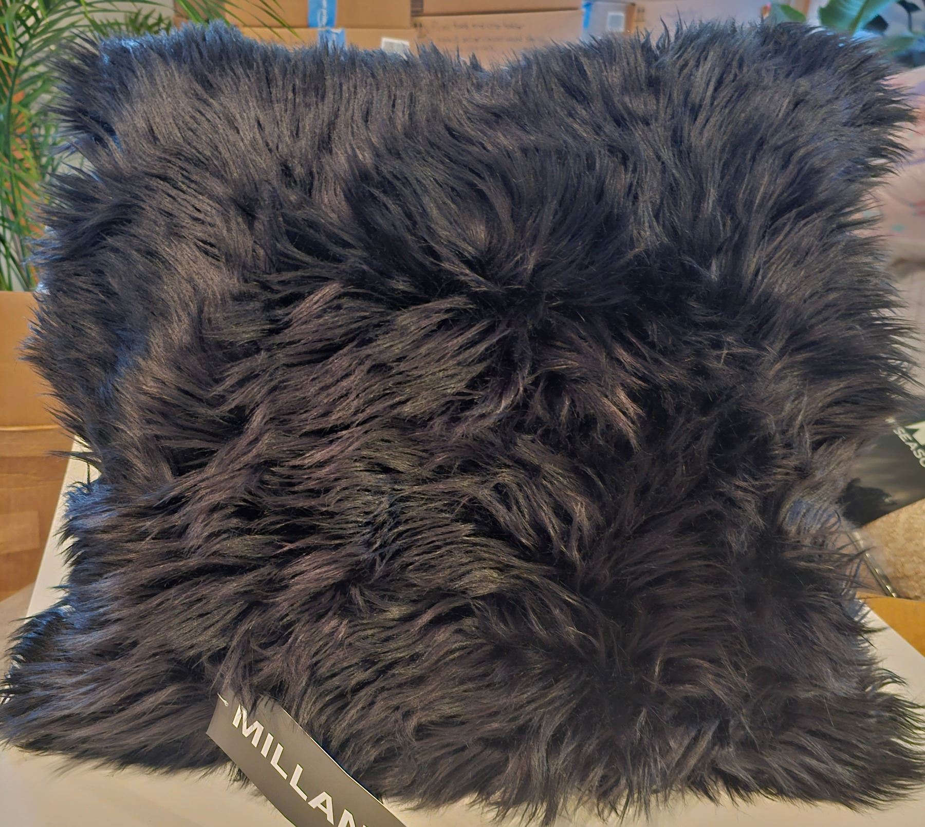 Millano Faux Fur Cushion, 20 x 20 Zipper Closure, New Condition