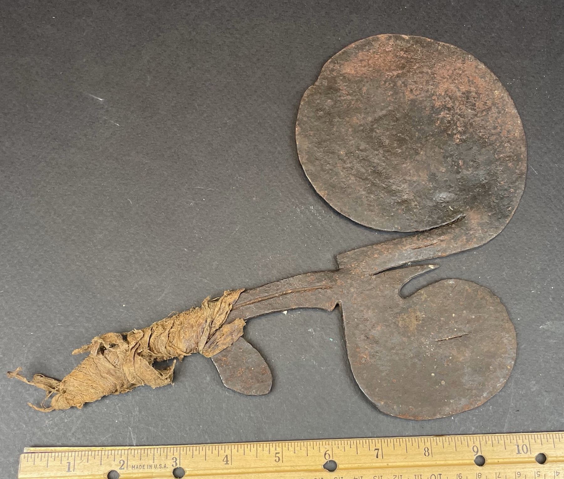 Description: One of the oddest of all primitive currencies is African throwing knife money. This example, called a ngindza, was used by the Bubu Tribe of central Africa. The blades were so thin that they were useless for any purpose except money. See Quiggin, pp. 69-70 and Fig. 14, and Opitz, p. 350.