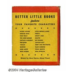<B>Thumper and the Seven Dwarfs Better Little Book #1409 (Whitman, 1944) Condition: VF/NM.</B></I> This cute Big Little Book combines Thumper (from Bambi) with the Seven Dwarfs of Snow White fame for a fun All-Pictures Comic edition. Pages are still supple and fresh; it appears this book was very carefully read once or twice, but never opened enough to break the spine. A very nice BLB indeed! Overstreet 2004 VF/NM value = $100. <BR><BR><B>Important notice:</B> Heritage usually auctions material at the rate of 200-250 lots per hour. On some occasions eBay Live bid software or the Internet may not be able to keep up with the pace of the auction. We recommend placing a realistic absentee bid now as insurance to avoid disappointment. Occasionally the auctioneer may eliminate or reject an eBay Live bid, and the auctioneer may also reopen a lot after the close of the eBay live bidding (usually because we missed an audience bid), and may reject your bid even if it shows you as the winning bidder. By bidding via eBay Live, you agree that Heritage may award the lot to another bidder at its sole discretion under the circumstances described above or any other reasonable circumstances. Since eBay bids are not shown to us until we open the lot on the floor, we treat those bids just like floor bids. In most cases the floor responds before the eBay bid is presented to us, due to Internet lag time, so for consistency we have made it a policy that floor bids are always considered first over tie eBay live bids. Also please note that all Heritage lots purchased through eBay Live carry a 20% Buyer's Premium. Please make sure you read the Terms and Conditions before you bid.
