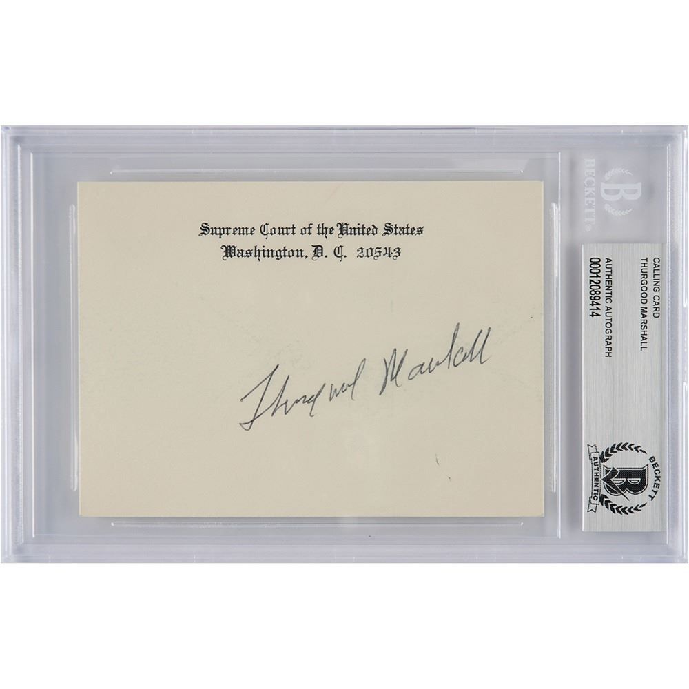 Ballpoint signature, "Thurgood Marshall,” on an off-white 4.75 x 3.5 Supreme Court of the United States card. In fine condition. Encapsulated in a Beckett authentication holder.