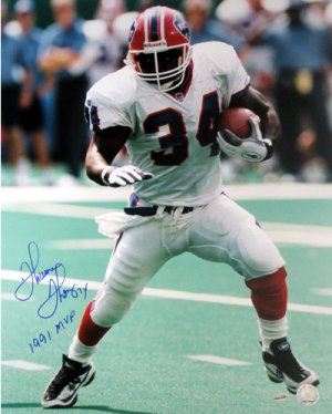 Thurman Thomas was the AFC rushing leader in 1990, 1991, and 1993. He was voted to the All-Pro team in 1990 and 1991, was selected to 5 straight Pro Bowls from 1989–1993, and was named NFL's Most Valuable Player in 1991. Thomas currently holds the all-time Buffalo Bills rushing record with 11,938 yards and the team record for yards from scrimmage with 16,279 over 12 years. Thurman Thomas has hand autographed this Buffalo Bills 16x20 Color Photo with 1991 MVP inscription. GTSM hologram and Certificate of Authenticity from Athlon Sports.