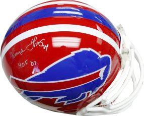 Thurman Thomas was the AFC rushing leader in 1990, 1991, and 1993. He was voted to the All-Pro team in 1990 and 1991, was selected to 5 straight Pro Bowls from 1989–1993, and was named NFL's Most Valuable Player in 1991. Thomas currently holds the all-time Buffalo Bills rushing record with 11,938 yards and the team record for yards from scrimmage with 16,279 over 12 years. Thurman Thomas has hand autographed this Buffalo Bills Proline Helmet with HOF07 inscription. GTSM Hologram and Certificate of Authenticity from Athlon Sports.