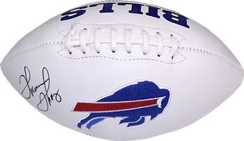 Thurman Thomas was the AFC rushing leader in 1990, 1991, and 1993. He was voted to the All-Pro team in 1990 and 1991, was selected to 5 straight Pro Bowls from 1989–1993, and was named NFL's Most Valuable Player in 1991. Thomas currently holds the all-time Buffalo Bills rushing record with 11,938 yards and the team record for yards from scrimmage with 16,279 over 12 years. Thurman Thomas has hand autographed this Buffalo Bills White Logo Football. JSA Hologram and Certificate of Authenticity.
